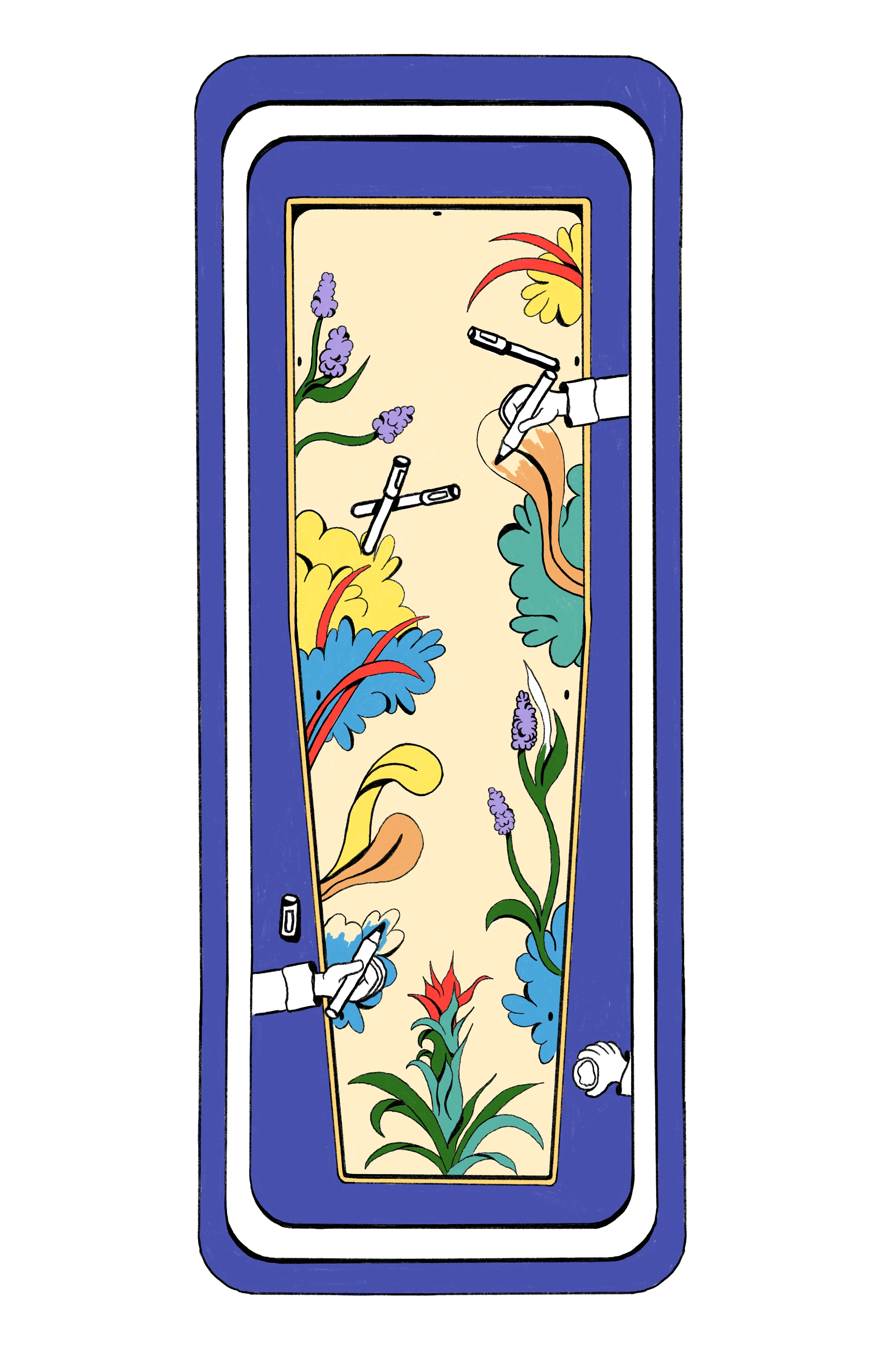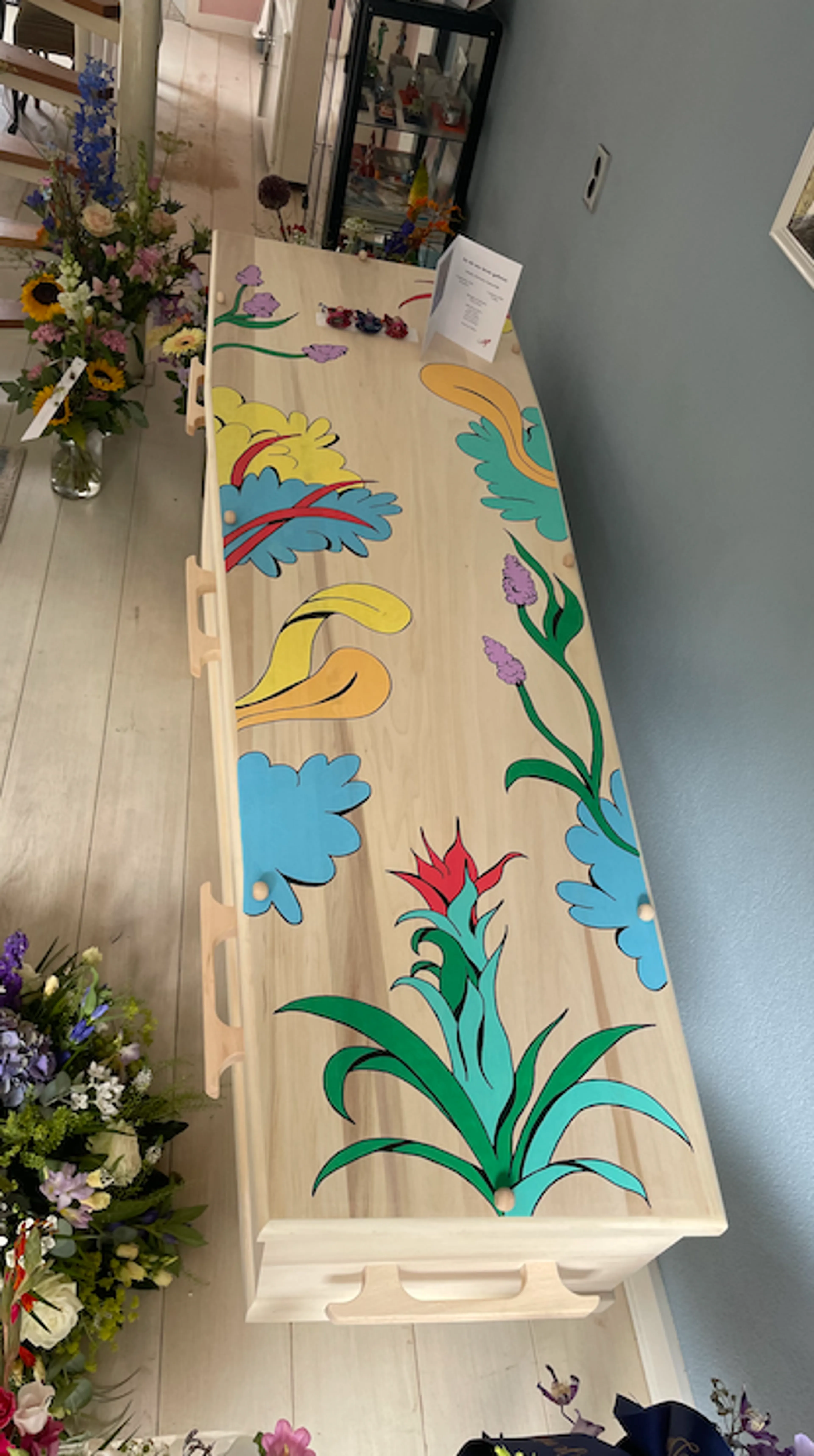 Ze maakt zelf de rouwkaart voor haar vader. Ze beschildert zijn kist. “Het helpt om iets te doen”, zegt ze. “Dingen die je doet om het een soort van eigen te maken.”