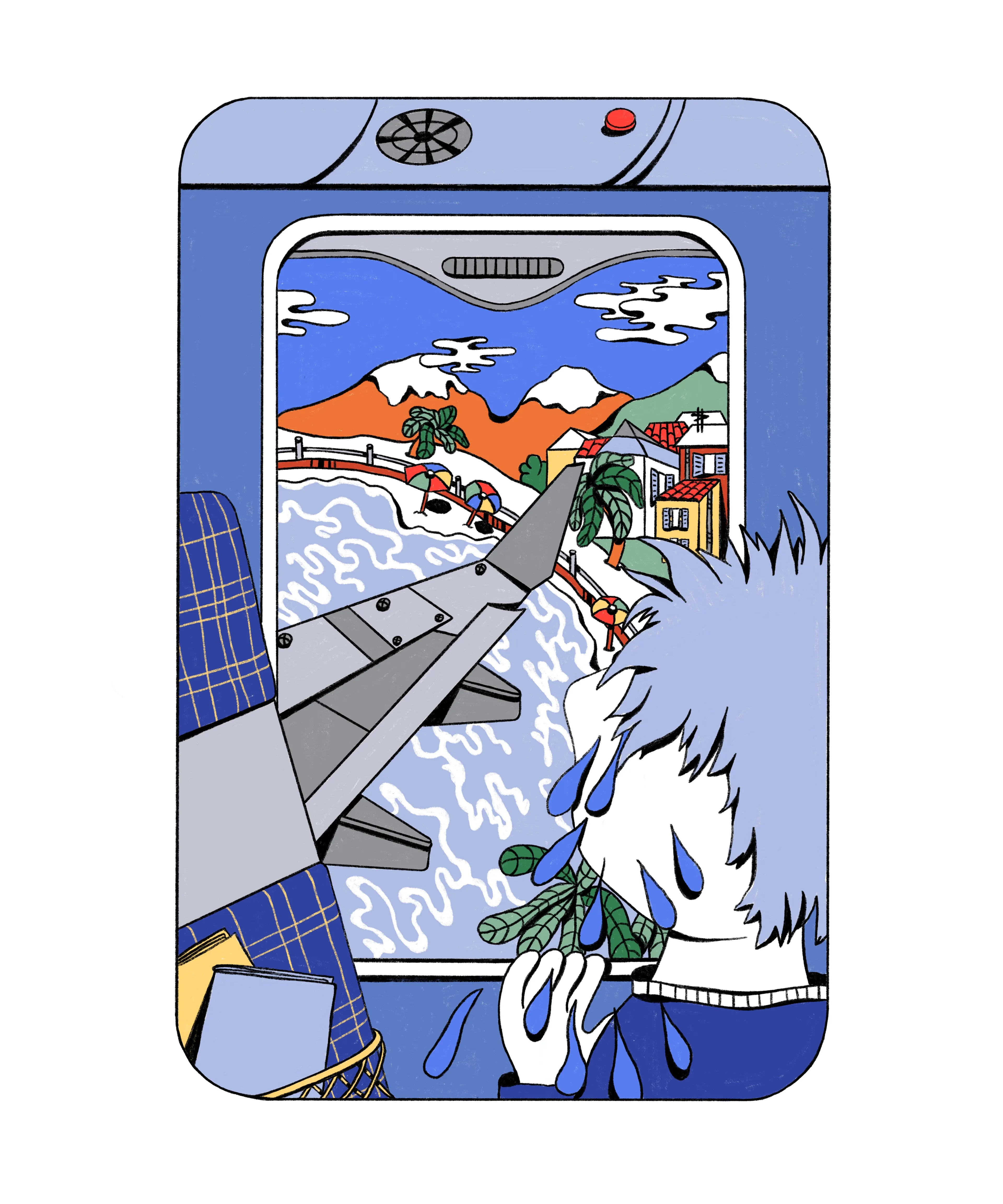 De security op het vliegveld controleert haar waterfles. Daar zit water in. En dat mag niet. “Wat maakt het uit dat ik water bij me heb! Niets maakt dan meer uit.”