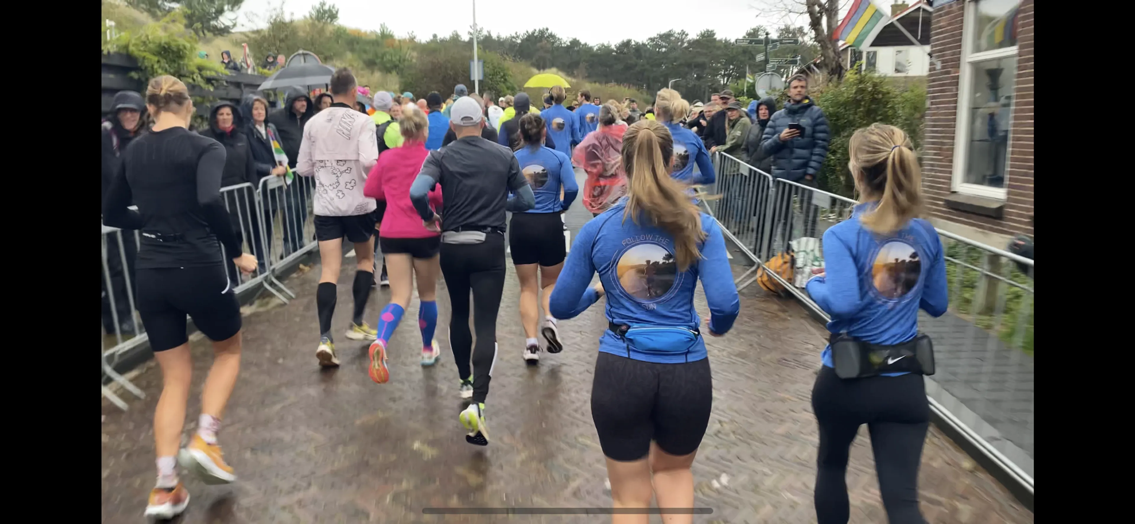 En Mees is erbij. Letterlijk en figuurlijk als back up. Op de achterkant van onze shirts prijkt zijn foto waarbij hij hardlopend de zon volgt. Follow the sun staat er onder. Naar het nummer van Xavier Rudd dat ons met een mix van verdriet en hoop steeds weer opnieuw weet te raken.