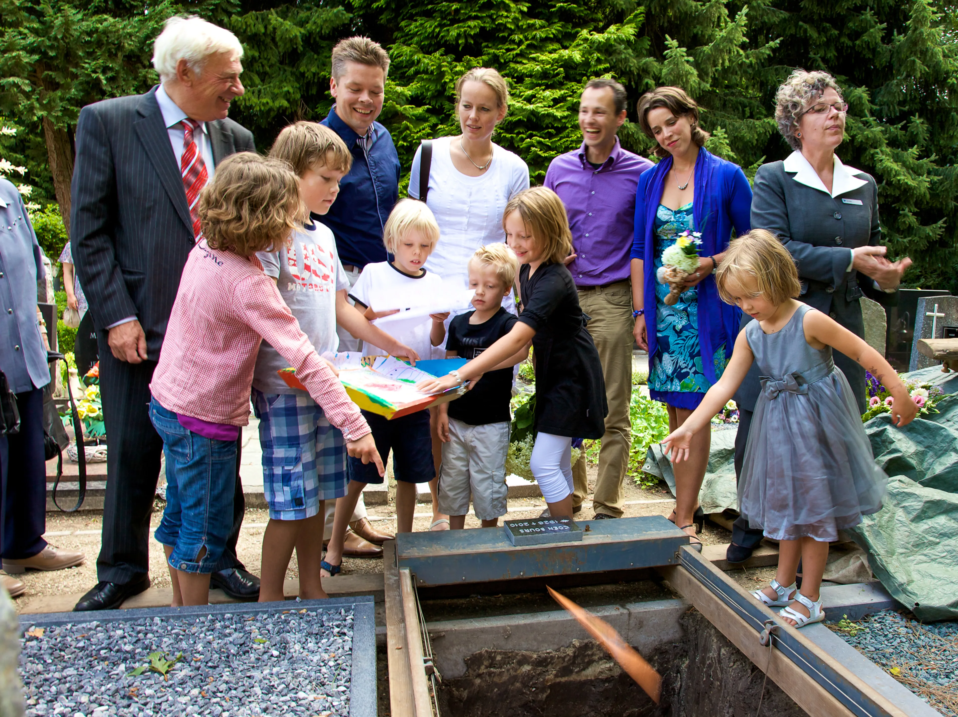 Die foto vond hij juist prachtig gemaakt, want zijn gezicht was niet in beeld en hij kon nu zien hoe troostrijk zijn moeder achter hem zat, want dat kon hij zich niet herinneren. Waarschijnlijk had hij dat niet eens gevoeld. Bovendien zag hij nu dat zijn nichtje stil was en omkeek, terwijl hij zich herinnerde dat ze gedurende de dienst almaar zat te grienen. In zijn herinnering waren dingen zo anders geweest. De foto’s gaven hem nu een waar beeldverhaal. Dat het helemaal niet zo verdrietig was, dat er ook gelachen werd. Dat de kinderen zeer betrokken waren en hun opa een waardig afscheid hebben gegeven.