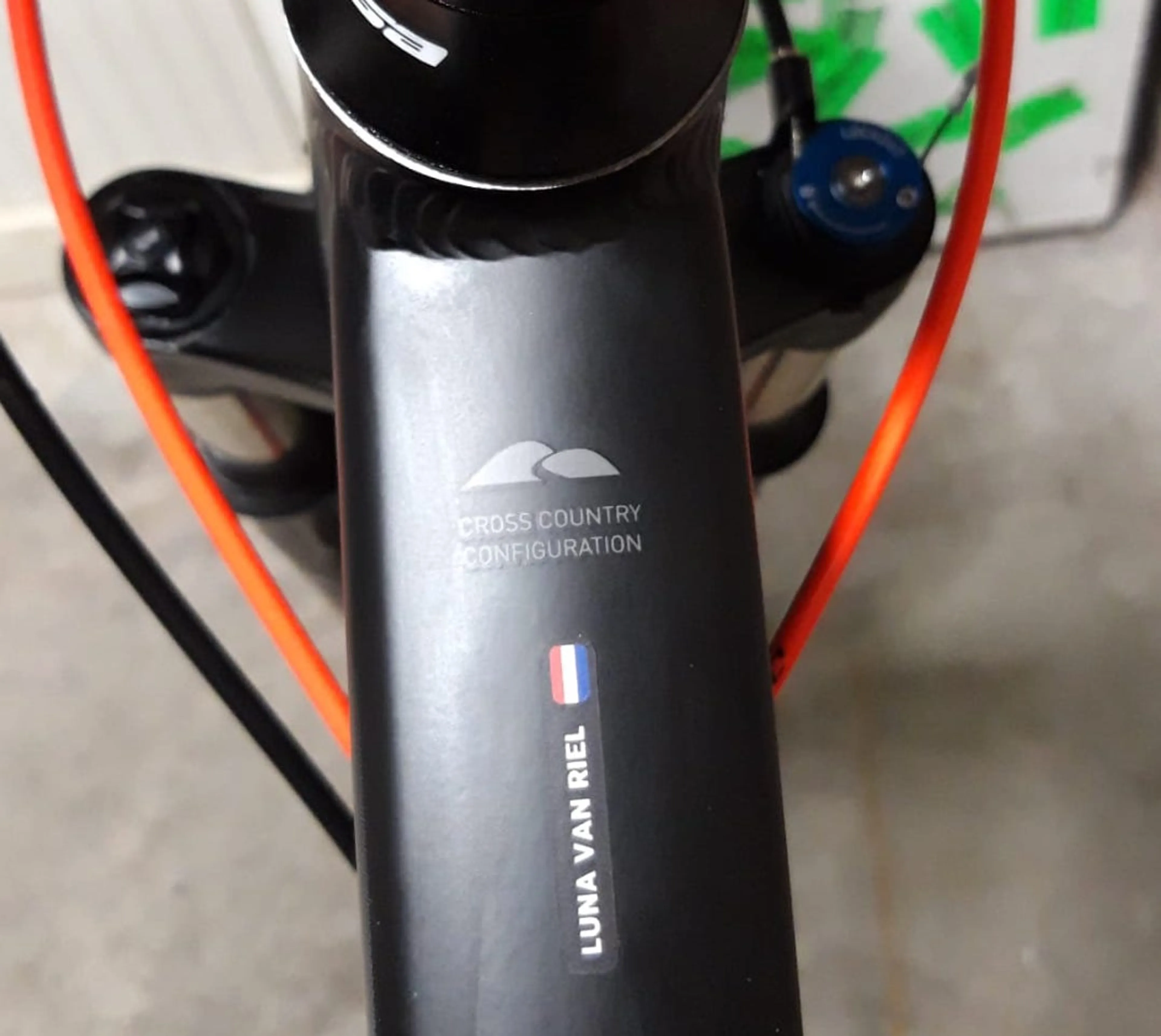Als ik dan rondrijd om mijn stalen ros en naar beneden kijk op de framebuis, zie ik daar de naam staan van het meisje dat me er wel doorheen sleept: Luna van Riel