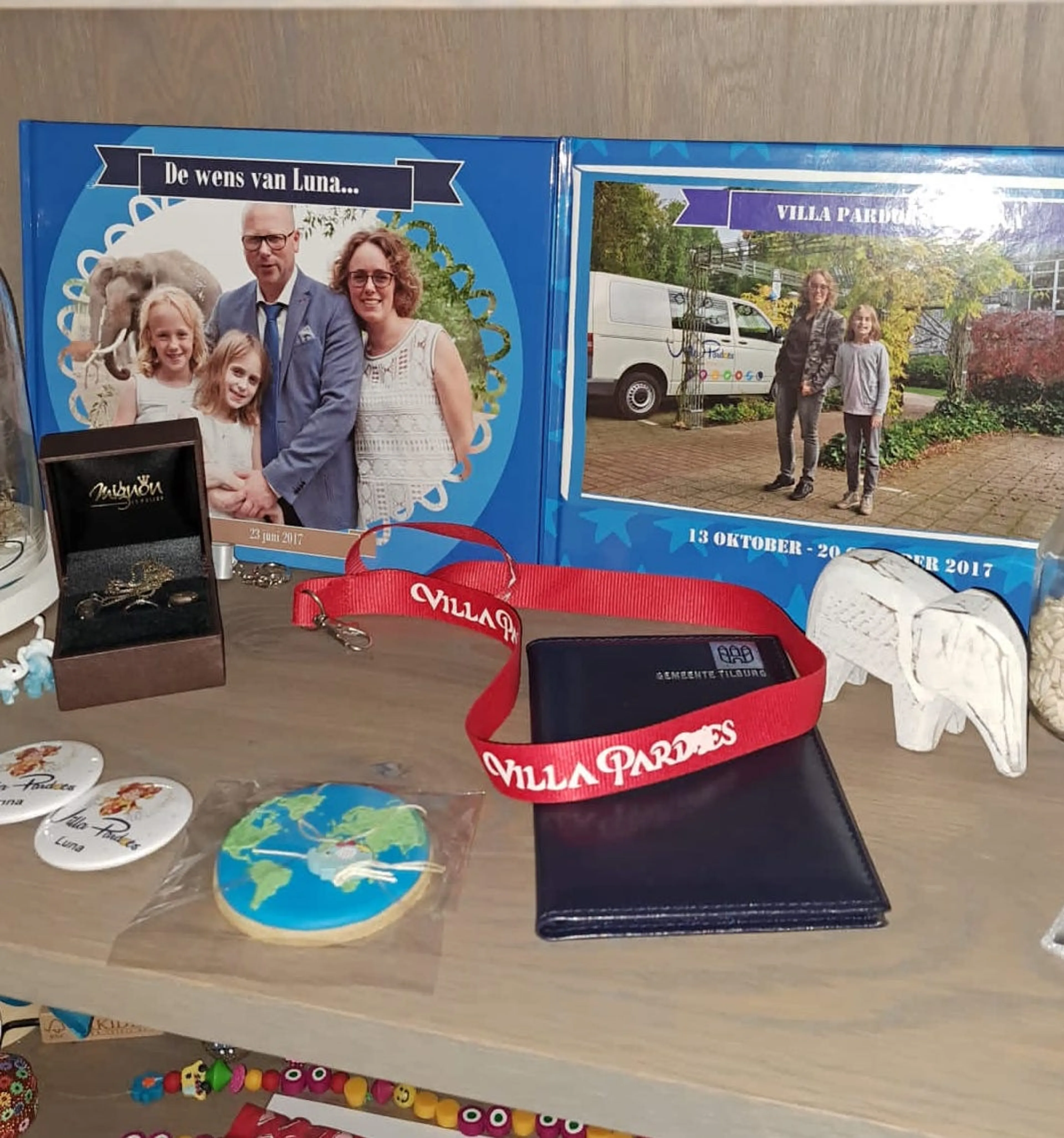 Luna's kanker was zo zeldzaam en agressief, dat ze waarschijnlijk nog een week of twee te leven had. Daarom werd Stichting Make-a-Wish benaderd: Luna wilde met ons trouwen, omdat wij getrouwd zijn voordat zij werd geboren. Haar wens kwam uit en hierna zelfs nog een aantal bonuswensen. Trouwen als gezin is een herinnering die we koesteren. En de kast bewaart een aantal dingen die we nog kunnen vastpakken.