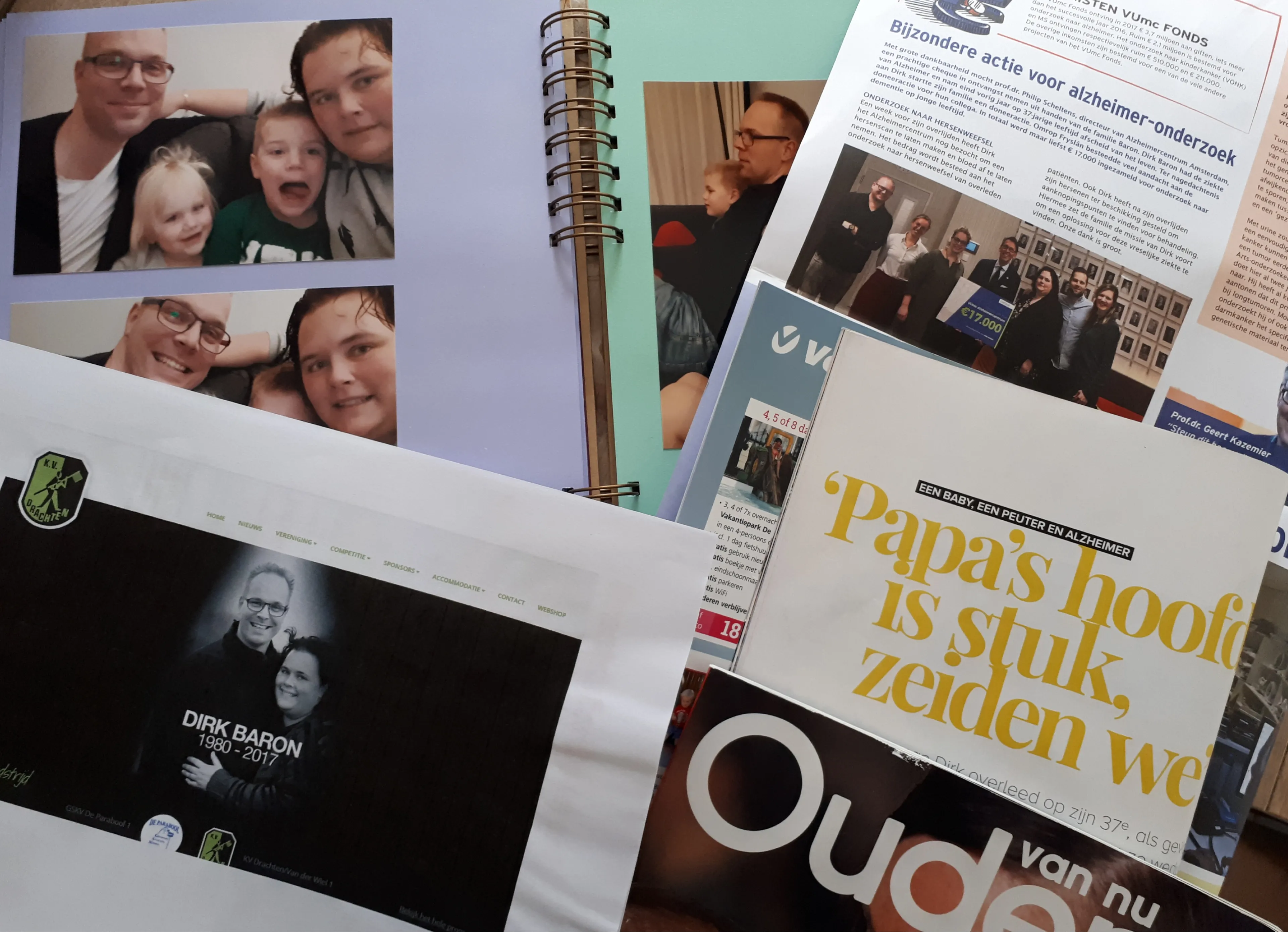 Met het oog op haar kinderen, maar ook voor haar eigen herinneringen, heeft Dieke zoveel mogelijk foto’s en video’s gemaakt tijdens de laatste weken van Dirks leven. Ook is ze gesprekken aangegaan met de hulpverleners die betrokken waren: de uitvaartleidster, de huisarts en de neuroloog.