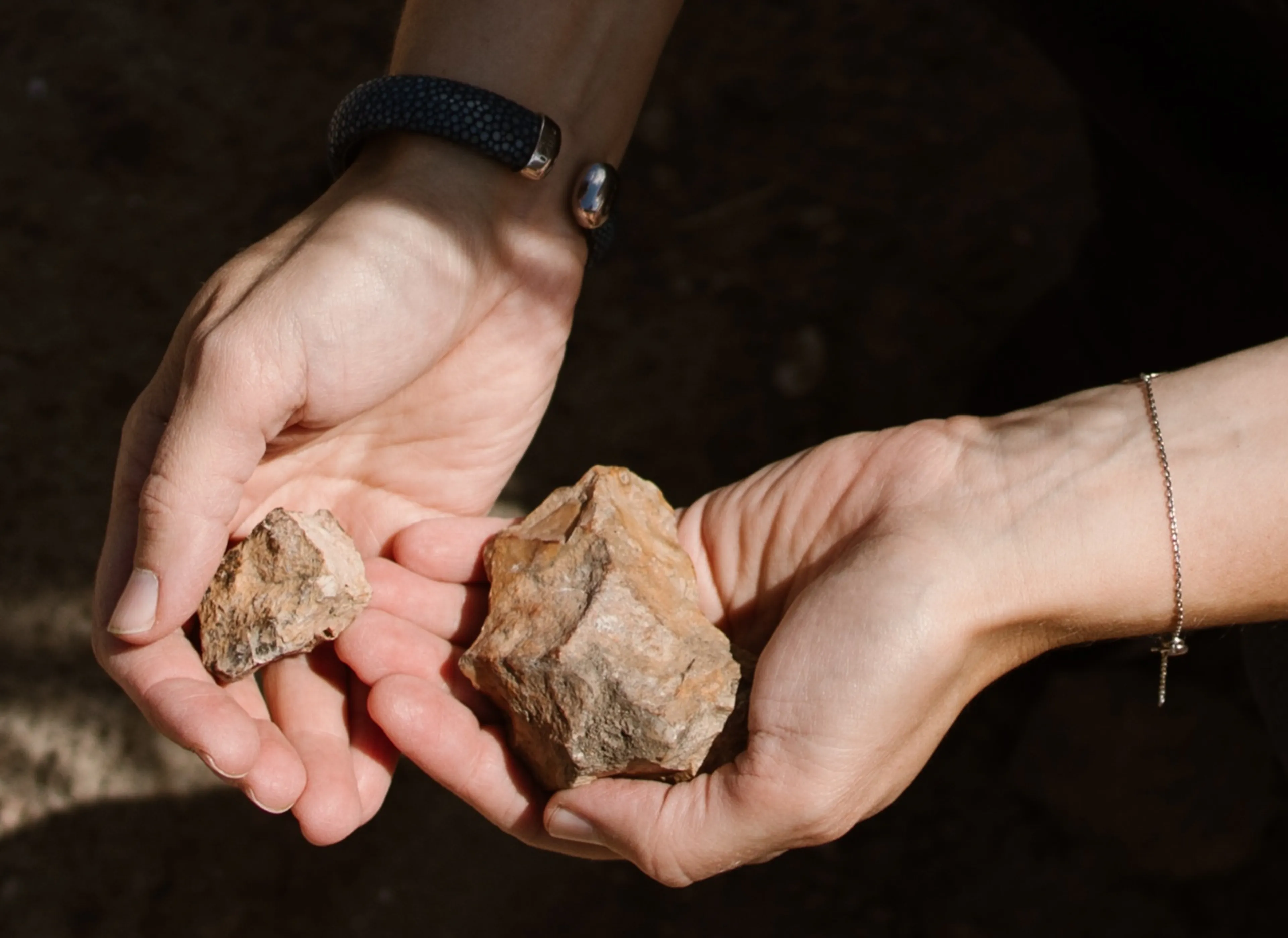 De lucht kleurt steeds donkerder en het begint te regenen. Het wordt tijd om te gaan. ‘Ik neem een steen mee’ zeg ik, terwijl ik een ruwe steen opraap van de grond tussen asfalt en berm. De plek waar ik de vorige keer stukjes bus en auto vond. Ik wil iets meenemen van deze plek, om te verbinden met mijn leven thuis. Om realiteiten samen te brengen. ‘Wil je er ook één?’ vraag ik aan mijn zus, en laat haar zien wat ik opgeraapt heb. ‘Ja’, zegt ze twijfelend, ‘maar dat is geen mooie steen, dat is puin!’. Ik knik, ze heeft gelijk. Het is ook puin.
