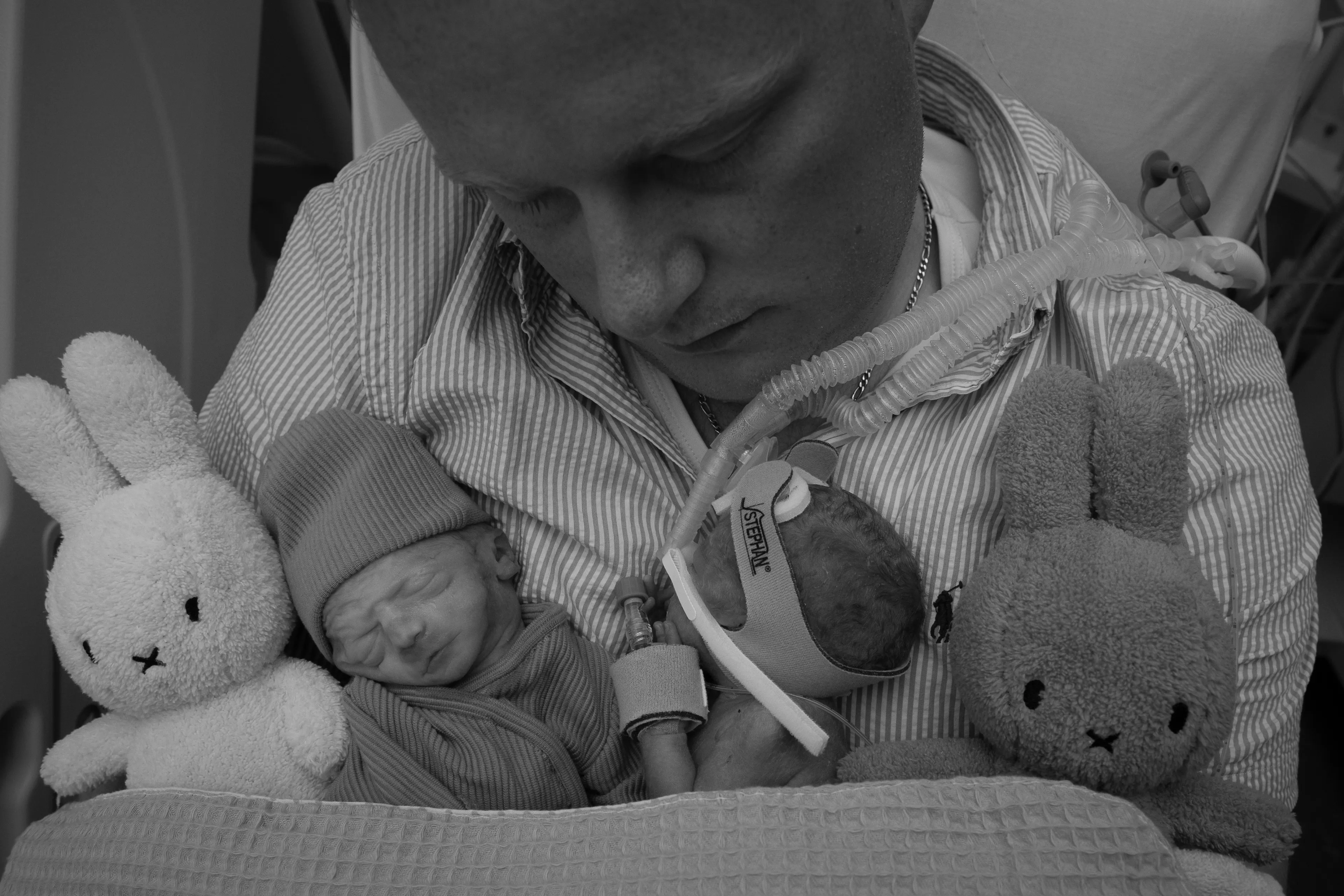 Drie dagen later – op 12 mei 2023 – wordt Noud in het ziekenhuis met een keizersnee geboren. Eline: “De bevalling ging niet vlekkeloos, en toen Noud geboren werd, hoorde ik hem niet huilen. Ik maakte me heel veel zorgen.” Noud wordt gereanimeerd en ligt daarna zes weken in een couveuse, en in totaal drie maanden in het ziekenhuis. Op zijn uitgerekende datum mag hij naar huis. Drie dagen na de geboorte van Noud wordt Ian naar het mortuarium in Tilburg gebracht.