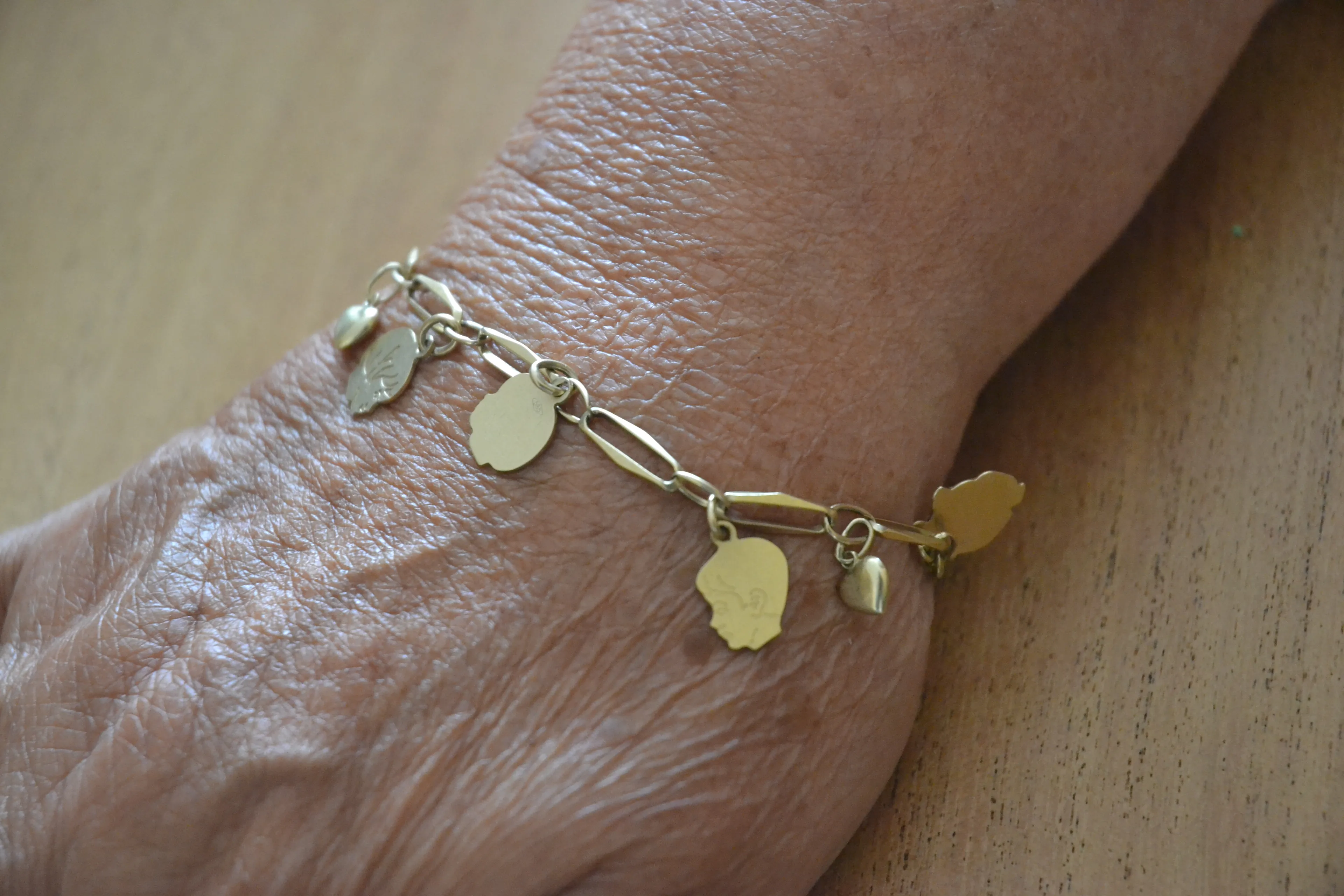 Femmie is blij dat ook haar overleden kleintjes nu een duidelijke plek in haar leven hebben. “Jeroen heeft een schilderij gemaakt met de namen van de kindjes erop en twee vlinders erbij. Ook heb ik een kettinkje gekocht met een hangertje met twee kinderhoofdjes, waarop de namen Klaas en Tjalling staan. Aan mijn armband zitten voor Klaas Jan, Evelien, Jeroen en de twee kleinkinderen elk een bedeltje. Voor de twee kleintjes heb ik er een hartje aan laten zetten; zij horen er ook bij.”