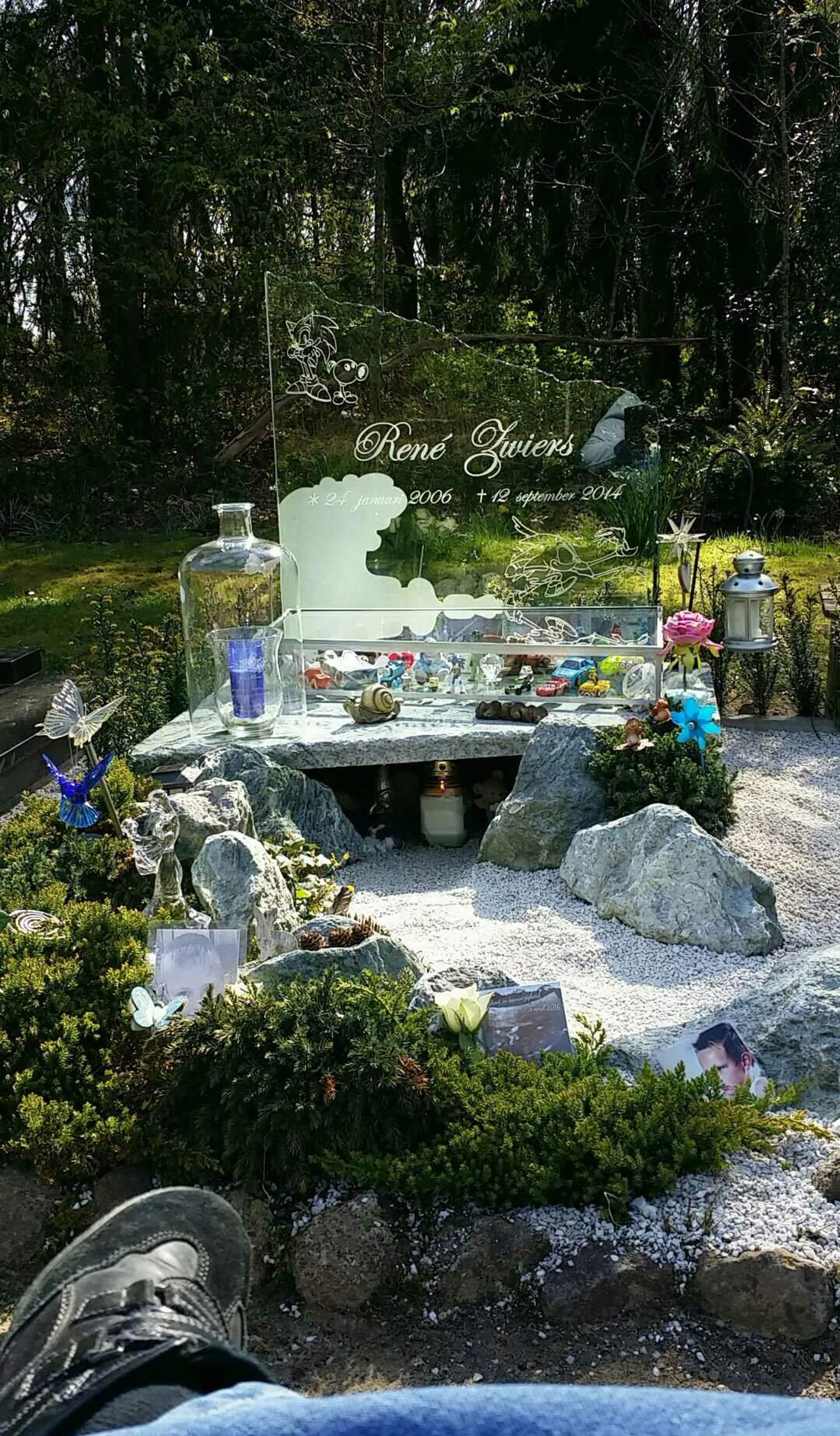 “Als ik naar mijn eigen rouwproces kijk, zie ik dat het met ups en downs gaat. Met het voorbij gaan van de jaren kan ik de innerlijke pijn en het verdriet wat beter dragen. Ik ervaar het gemis anders: de leegte is heel groot, maar het ouderschap vervaagt ook. Daarom schrijf ik ook brieven aan hem op Facebook, zo is hij er toch een beetje bij. Wat ik ook heel fijn vind, is om op de begraafplaats te zijn. Zijn plekje daar voelt als mijn tweede thuis: ik vind er rust. In de eerste twee jaar na zijn overlijden ging ik elke dag, nu meestal één keer per week. Hij ligt daar in het bos, op een prachtige plek waar zijn opa nog gespeeld heeft.