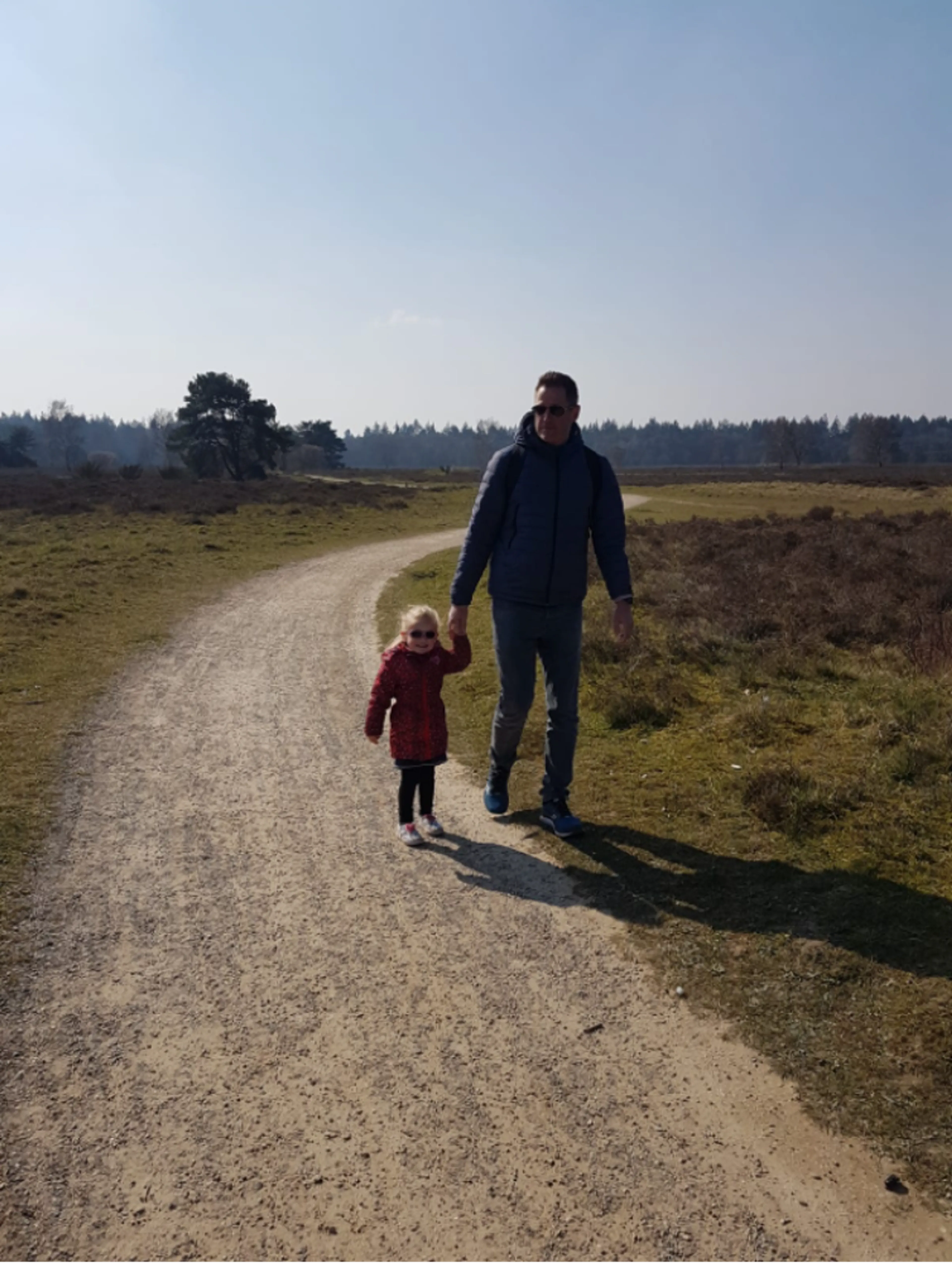Op 28 maart 2020 wandelden we op de hei met vrienden en onze kleine meisjes van toen één en drie jaar. Ik maakte een foto van onze oudste dochter Sanne met papa, waarop ze hand in hand over de hei liepen. Sanne vond het super stoer om net als papa een zonnebril op te hebben. Na de wandeling aten we thuis ragout, het lievelingseten van Jeroen. Hij ging nog even een rondje op de motor rijden, dus we gaven hem een dikke kus en zwaaiden hem uit. Niet wetend dat dit de allerlaatste keer was dat we hem zagen.