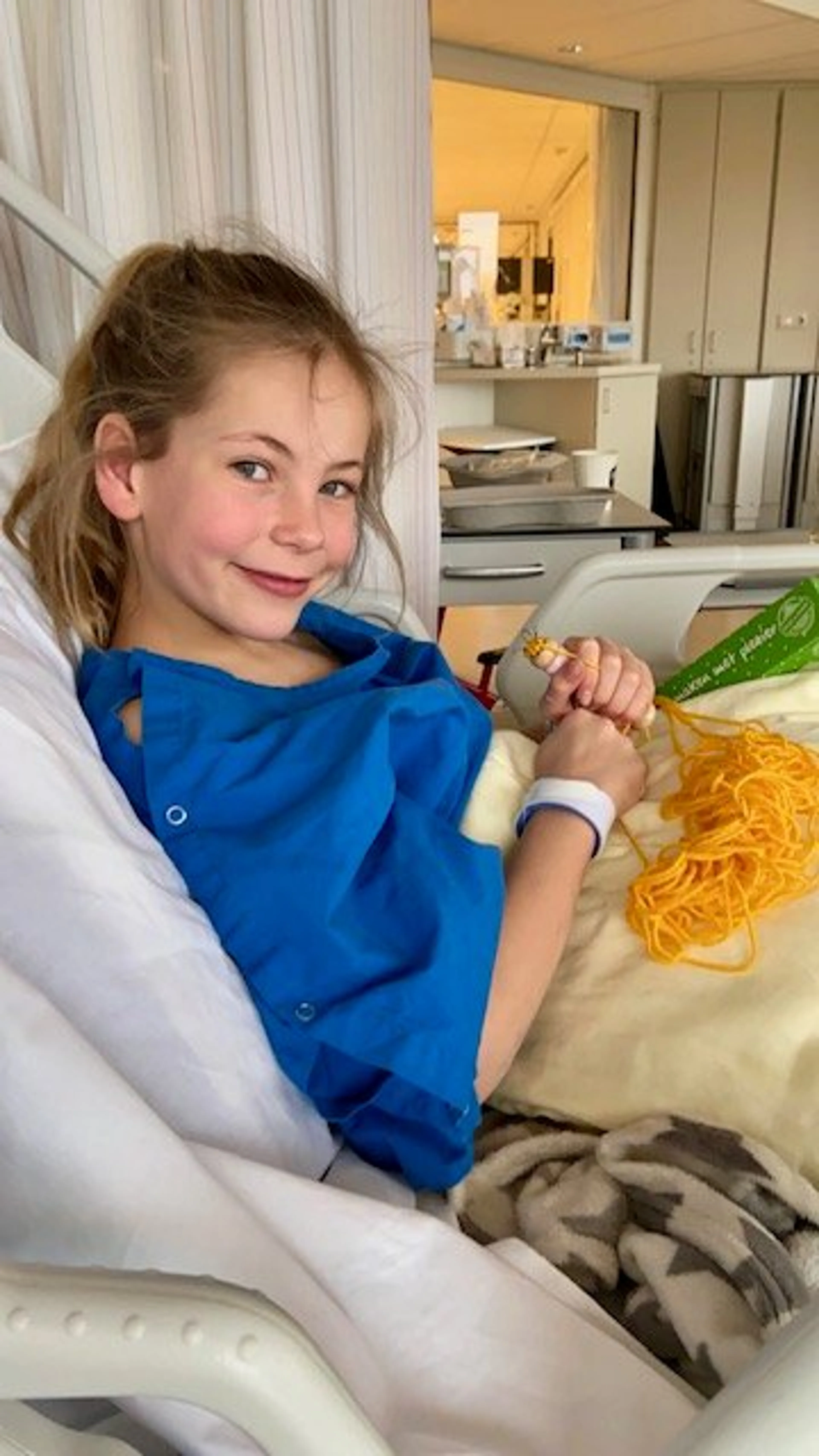 “De operatie is geslaagd, je kan haar ophalen bij de uitslaapkamer”, zei de arts. Toevallig was ik er eerder dan zij. Toen ze kwamen aanrijden, was Lynn aan het overgeven. Dat deed ze normaal nooit na een operatie. Ze was bezweet en maar half wakker.