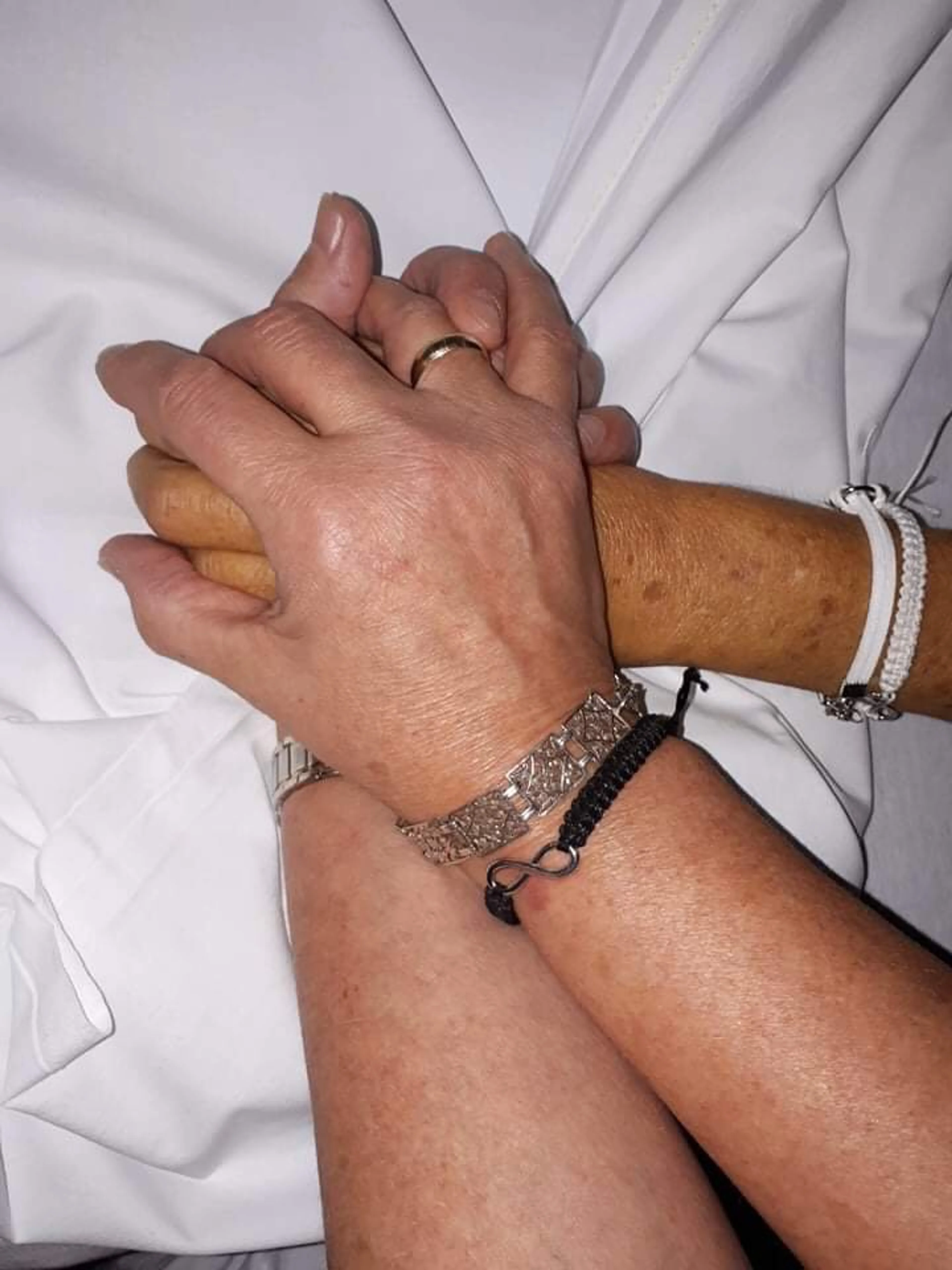 Deze foto is gemaakt toen ik nog één keer haar kostbare warme hand mocht vasthouden. Ik zei tegen haar: ‘Zus, je bent welkom thuis in de hemel.’”