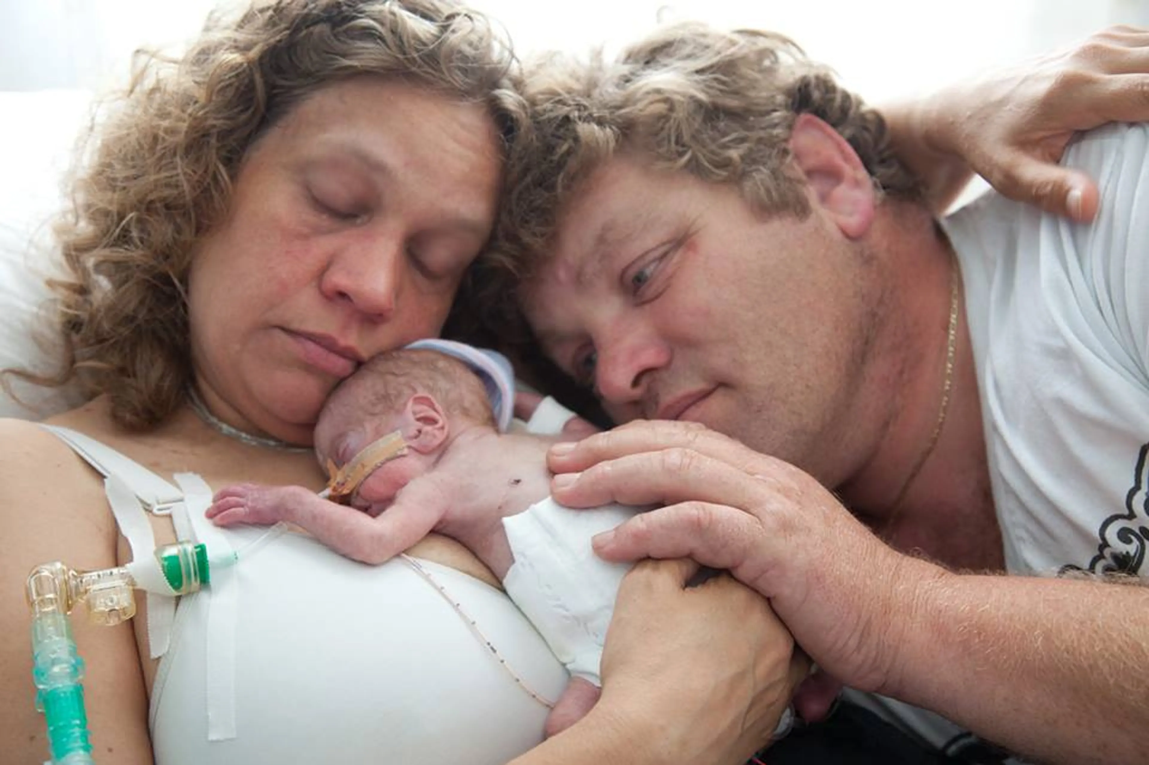 Anita Siepman (53) en haar man Jos verliezen hun eerste kindje Patrick, die na een leven van ruim vijf weken de strijd tegen onrijpe longetjes verliest. Op deze laatste foto (onderaan de pagina) zie je de twee trotse ouders met hun zoon, vlak voor hij overlijdt.