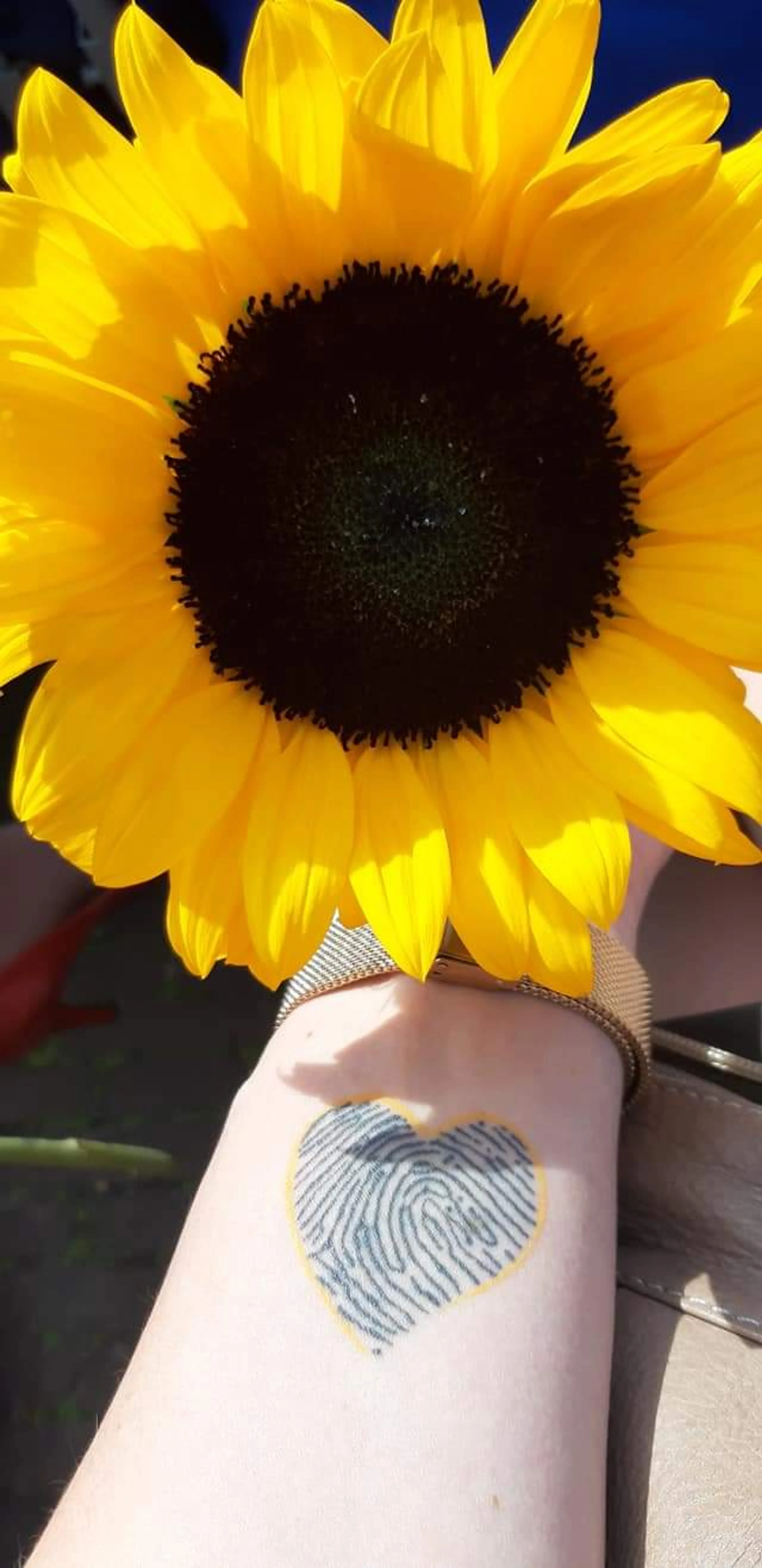 Een vingerafdruk, met daaromheen een gele rand. Het is één van de meest tastbare herinneringen die Marije aan haar broertje Wytze heeft. Want het is zíjn vingerafdruk die aan de binnenkant van haar pols prijkt. Verkregen via de Marechaussee. “Die gele rand verwijst naar een zonnebloem," vertelt Marije. “Hij was het zonnetje in huis. Als we met z’n allen bij elkaar waren, was het altijd keigezellig.”