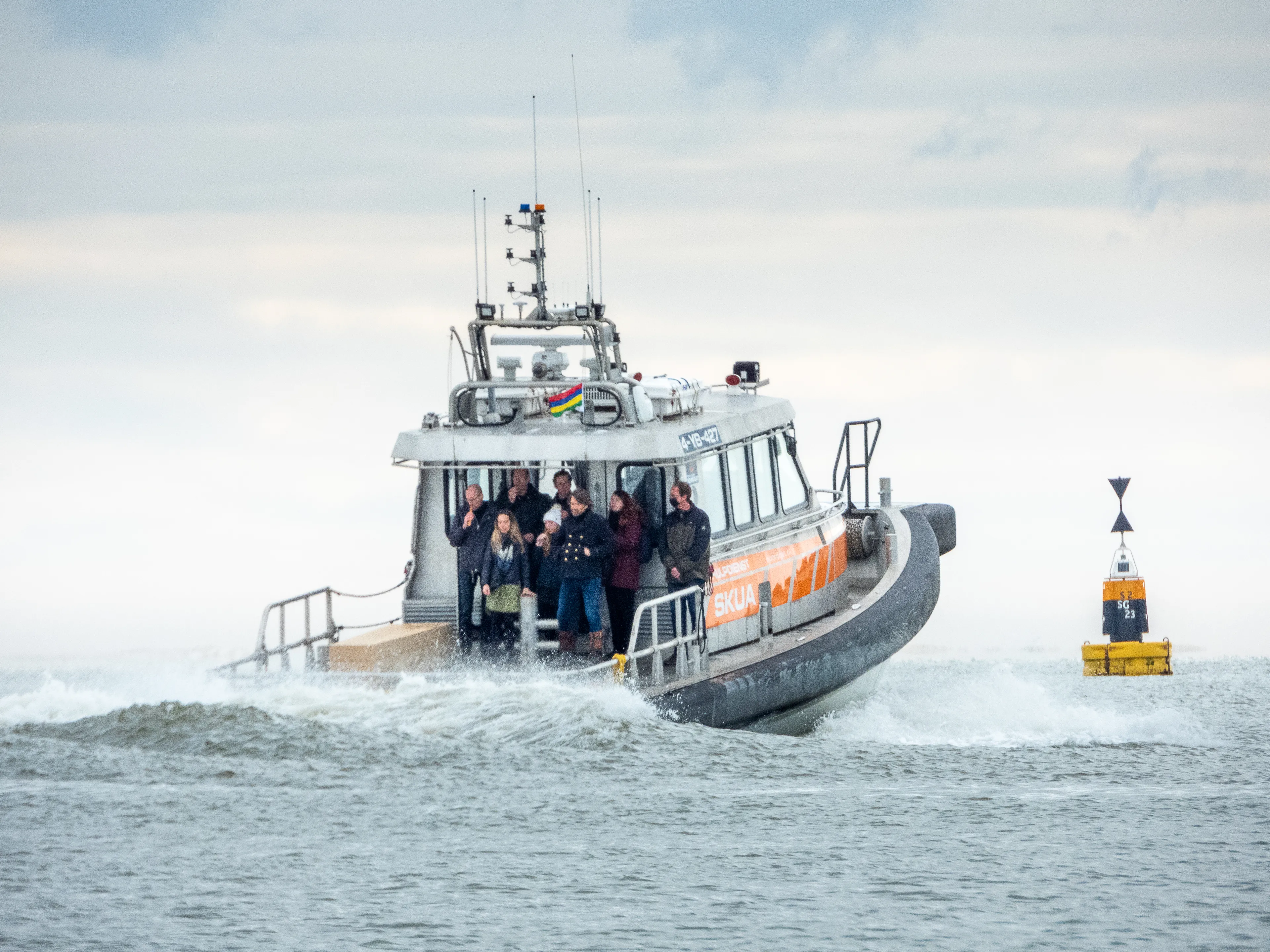 Met een watertaxi brengt het gezin Mees terug naar het eiland. “We stonden op het achterdek,” zegt Anemoon. “De kist vasthoudend voeren we over de beukende golven. Het was heel puur.”
