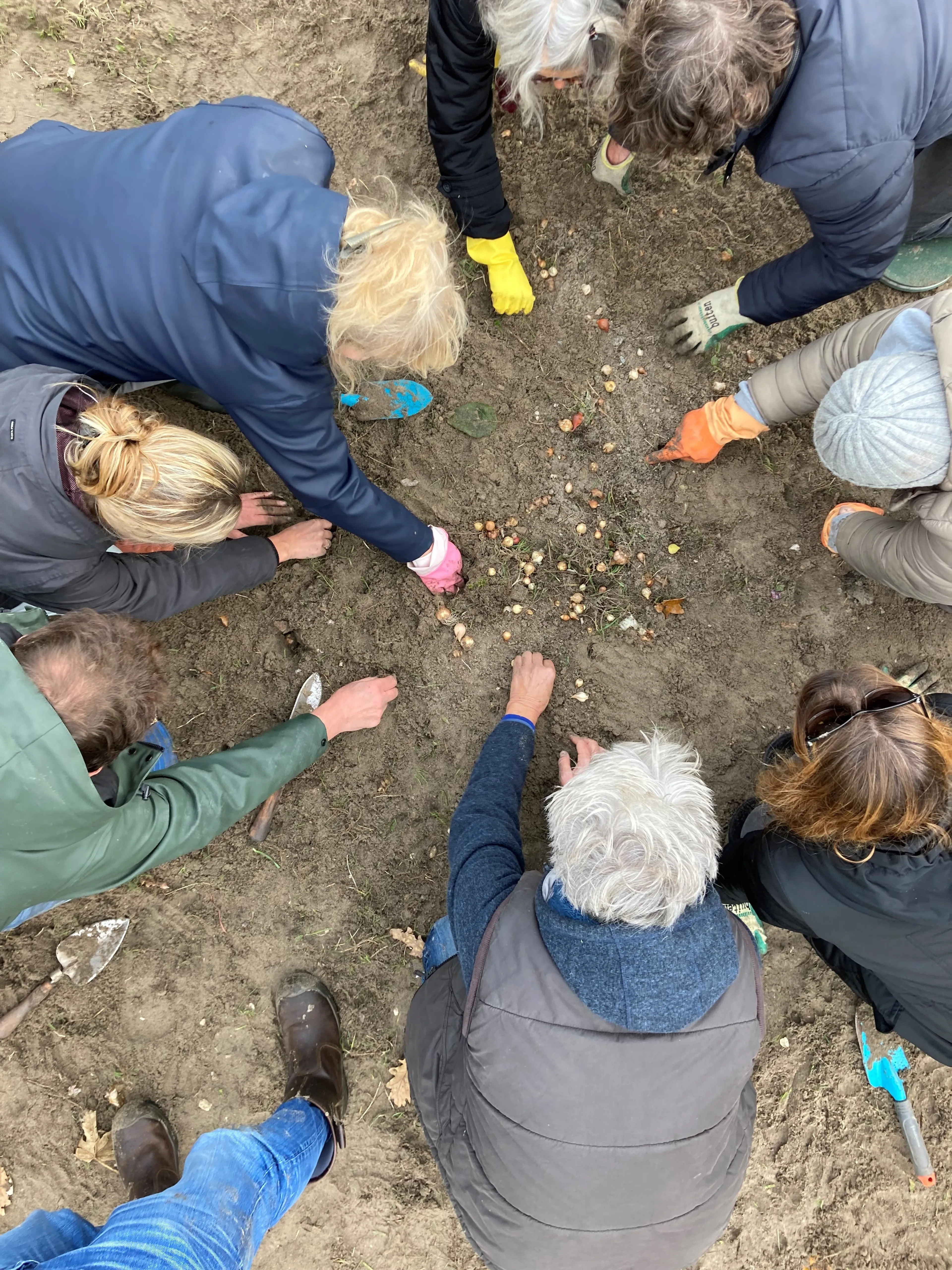 Iedereen die dat wilt, plant een bolletje op de plek van het ongeluk. Arjan: “Ik vond dat heel louterend, met je blote handen in de aarde. Sindsdien is de plek van het ongeluk voor mij geen probleem om langs te rijden. Maar voor jou is dat inmiddels anders, hè.”
