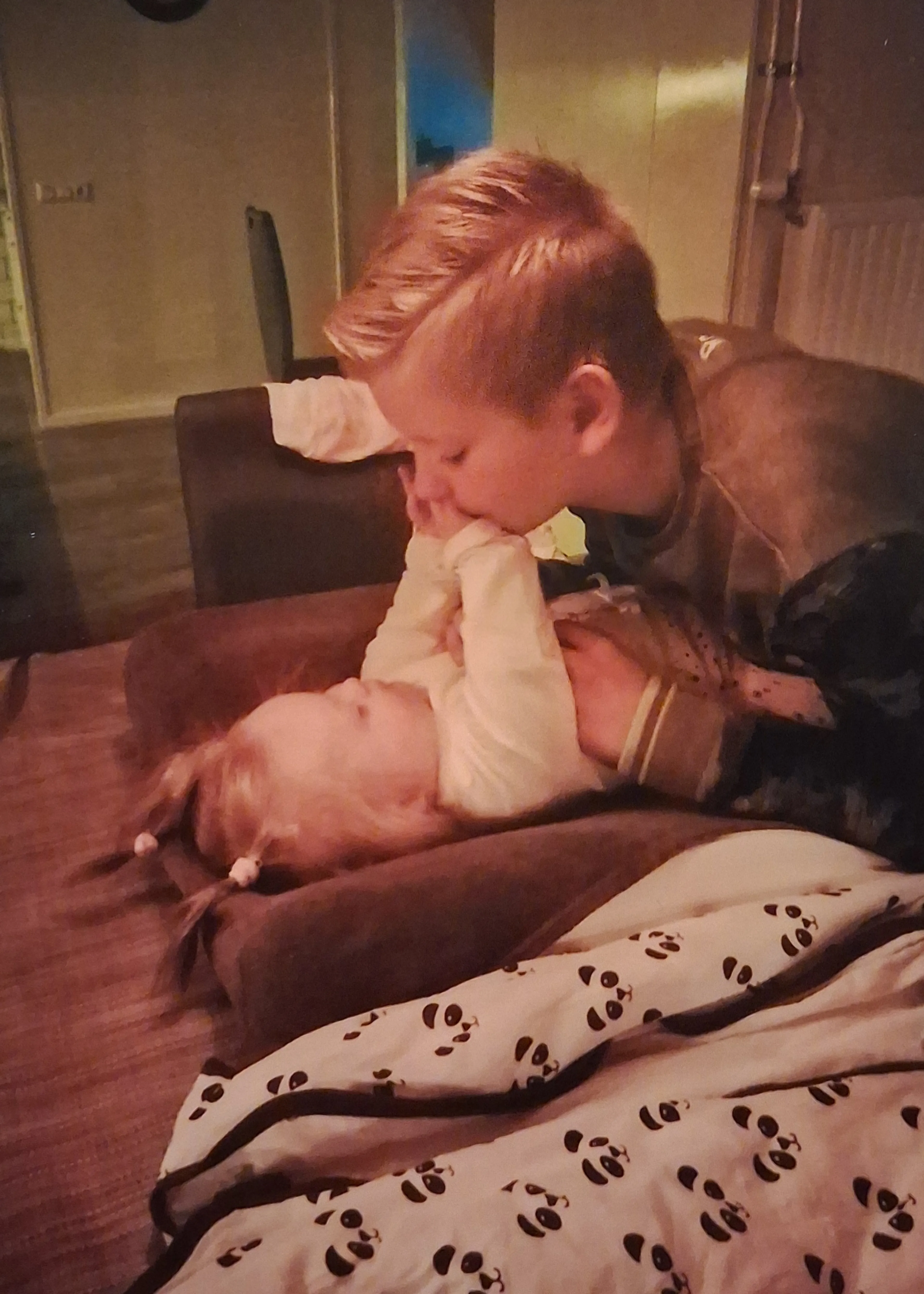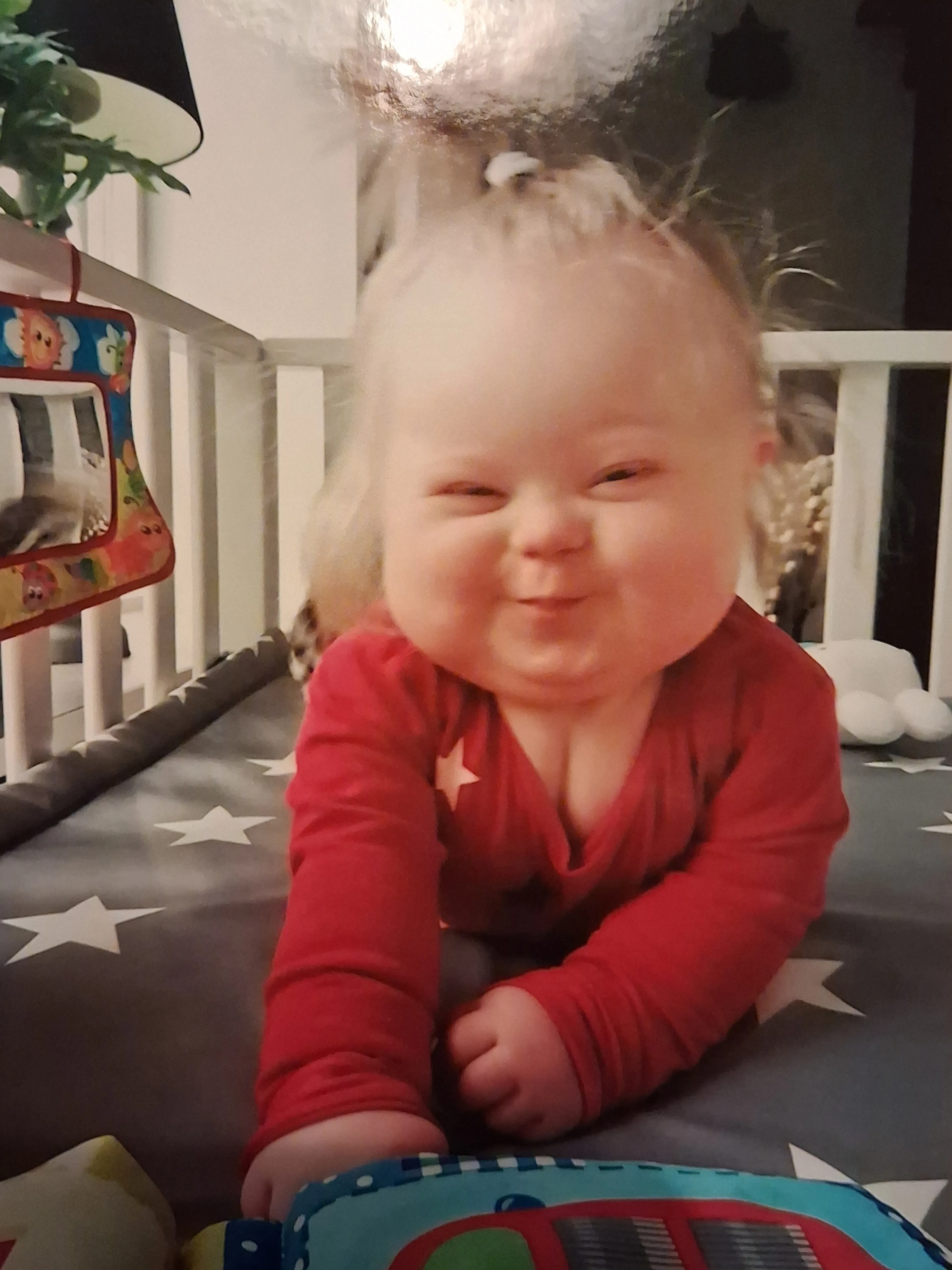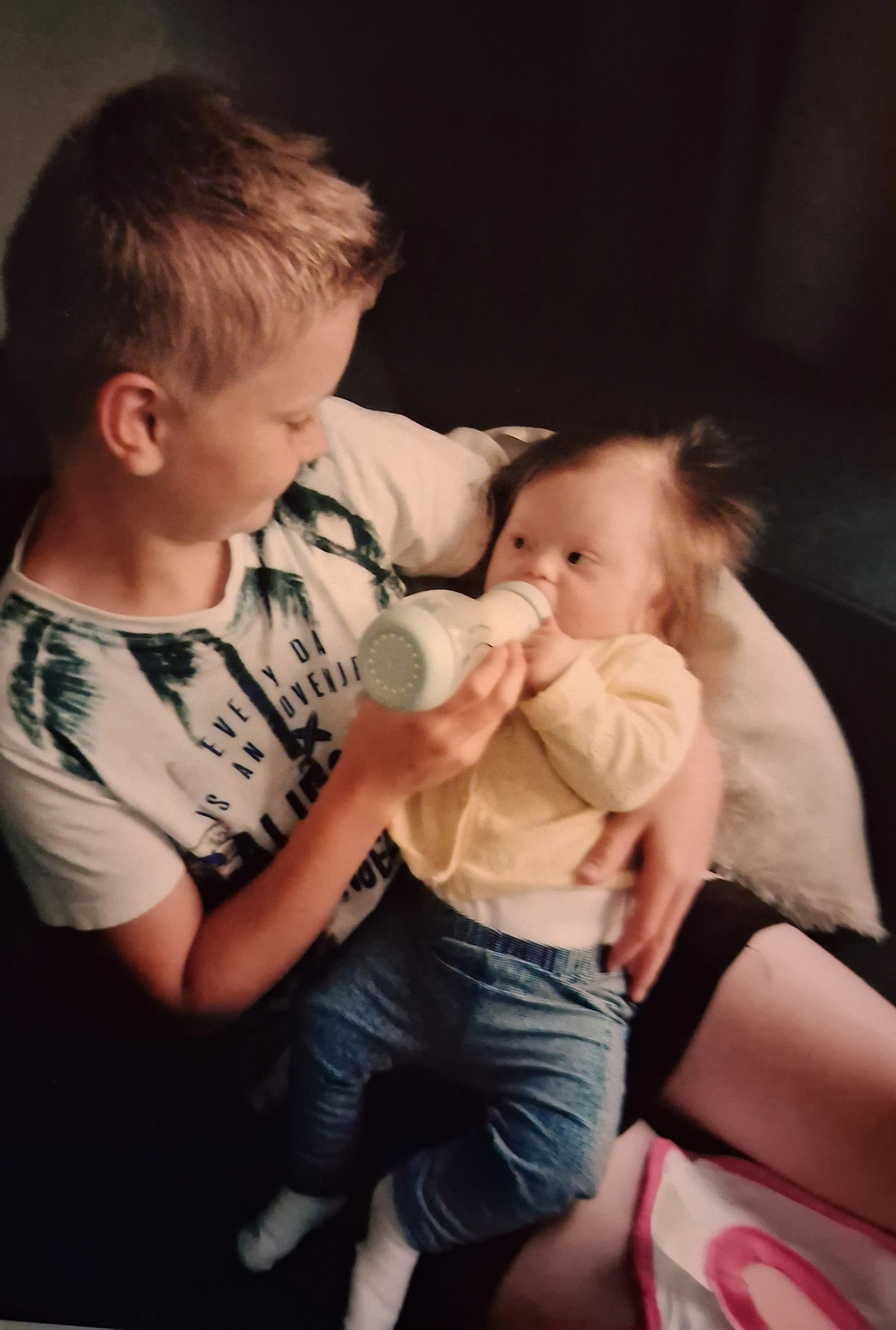 Esmee is een vrolijke baby en wordt op handen gedragen door haar broer en zussen. Mirjam vertelt: “We hebben een fijn, sterk gezin met prachtige kinderen. Als ze thuiskwamen uit school renden ze mij voorbij om gelijk naar Esmee te gaan. Ze waren soms gewoon boos als ze dan op bed lag. Ook Jaco was zo dol op ‘mijn kleine meisje’ zoals hij haar noemde. Soms was Esmee overprikkeld en dan legde hij haar op zijn borstkas. Ze kwam dan helemaal tot rust en lag dan met haar kleine vingertje over zijn gezicht te aaien. We genoten zo van haar. Ik vond het prachtig om een meisje met het downsyndroom te hebben. Mijn liefde voor haar was zo diep dat het soms gewoon pijn deed.”