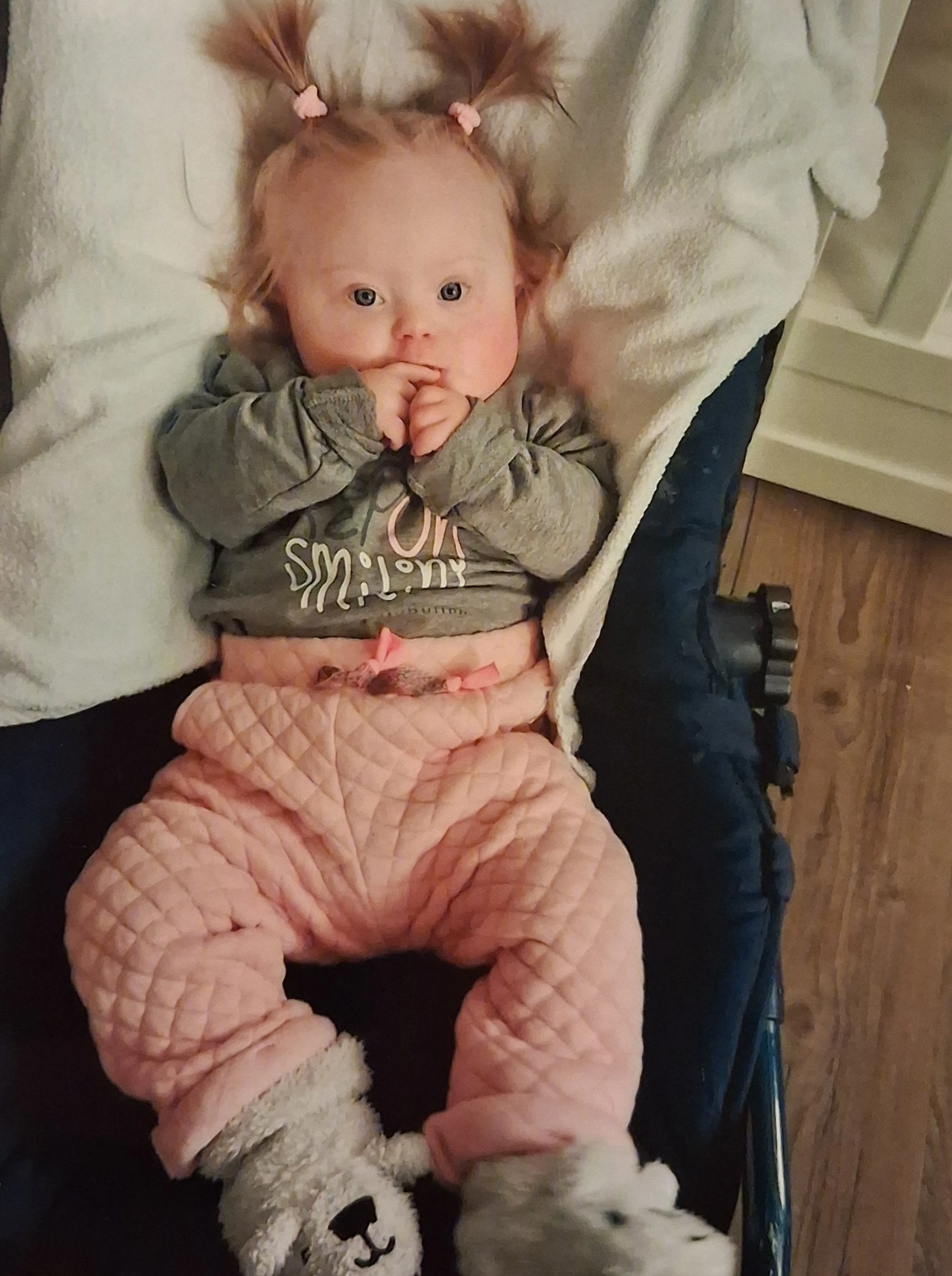 Als Mirjam op vakantie is in Frankrijk, heeft ze een positieve zwangerschapstest in haar handen. Ze is verrast en vooral heel blij. Met vier kinderen tussen de elf en zestien jaar voelt dit vijfde kindje speciaal. “Jaco en ik vonden het allebei echt een cadeautje. Dit is een kindje van ons allemaal. Bij de 20-wekenecho ziet alles er goed uit: "De echoscopiste zei: 'We zien geen aanwijzingen voor het syndroom van Down.' Hoe ze dat gemist kan hebben, is me een raadsel. Ze had echt zo’n heerlijke dikke nek die kinderen met Down vaak hebben,” lacht Mirjam.
