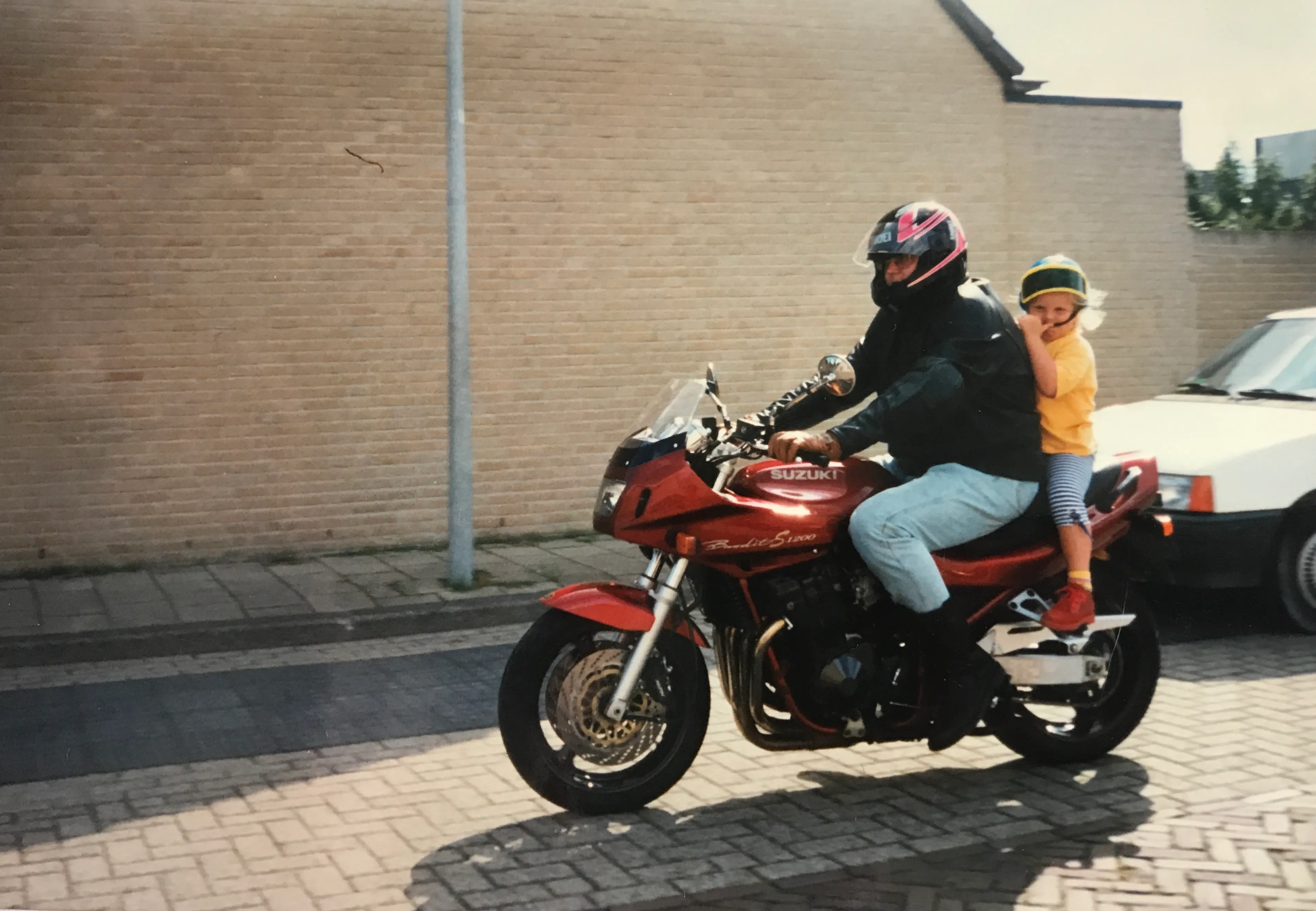 “Al in de luiers zette mijn vader me op zijn motor,” grijnst Nicole. Hij is dan ook enorm trots als zijn dochter eindelijk oud genoeg is om mee achterop te gaan voor een ritje. “Ik mocht zijn oude handschoenen aan.”
