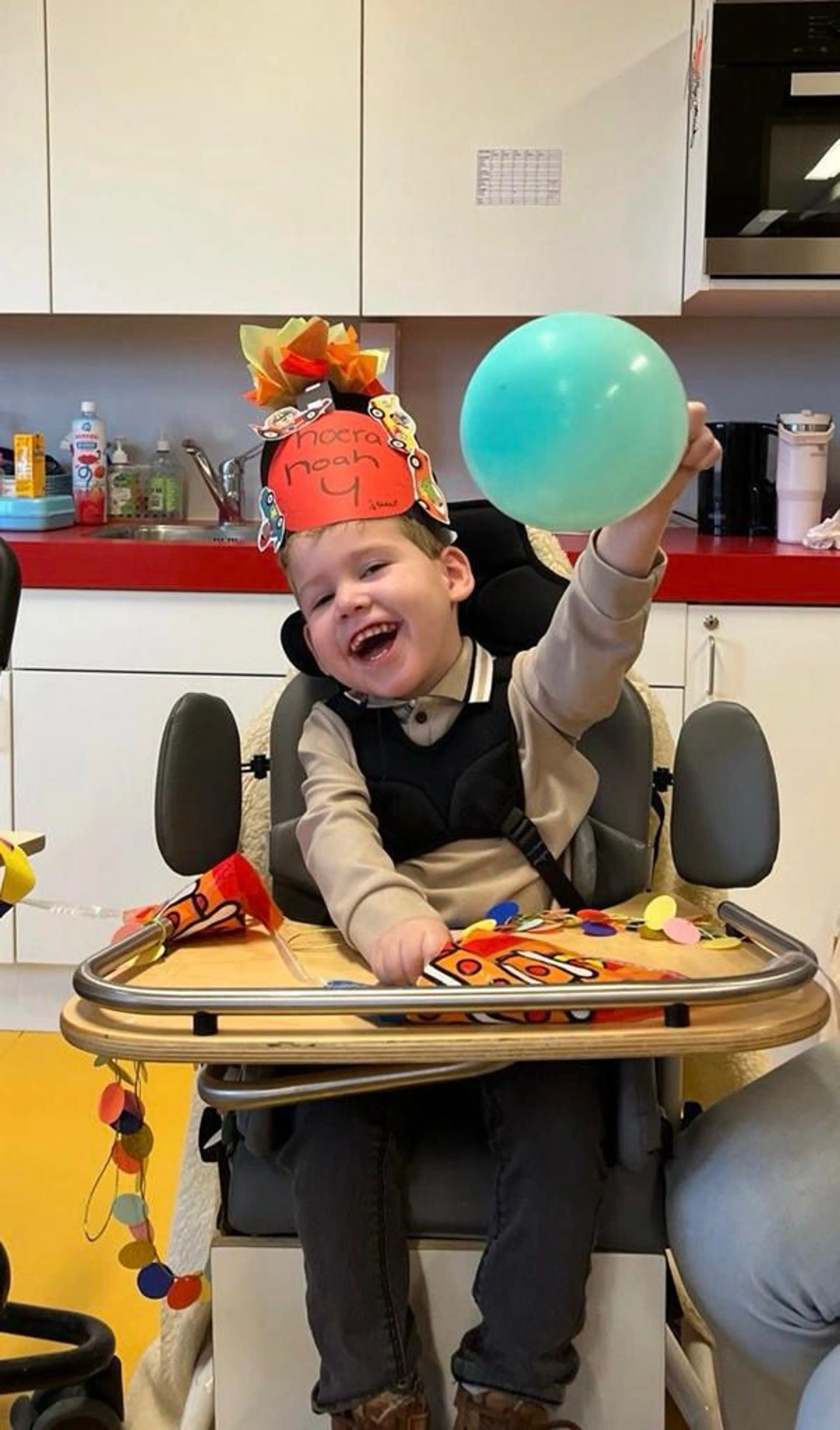 Noah was een zorgenkindje. Toen hij zo’n zeven maanden was, werd ontdekt dat zijn linkerhersenhelft niet ontwikkeld was. “Hierdoor was hij zeer ernstig meervoudig beperkt. Hij kon niet staan en lopen, niet zelfstandig zitten, had een slikstoornis en epilepsie. Daarnaast had hij niet genoeg kracht in zijn romp, waardoor hij niet goed kon hoesten en erg vatbaar was voor longontsteking. Hierdoor belandde hij vaak in het ziekenhuis”, legt Sheila uit.