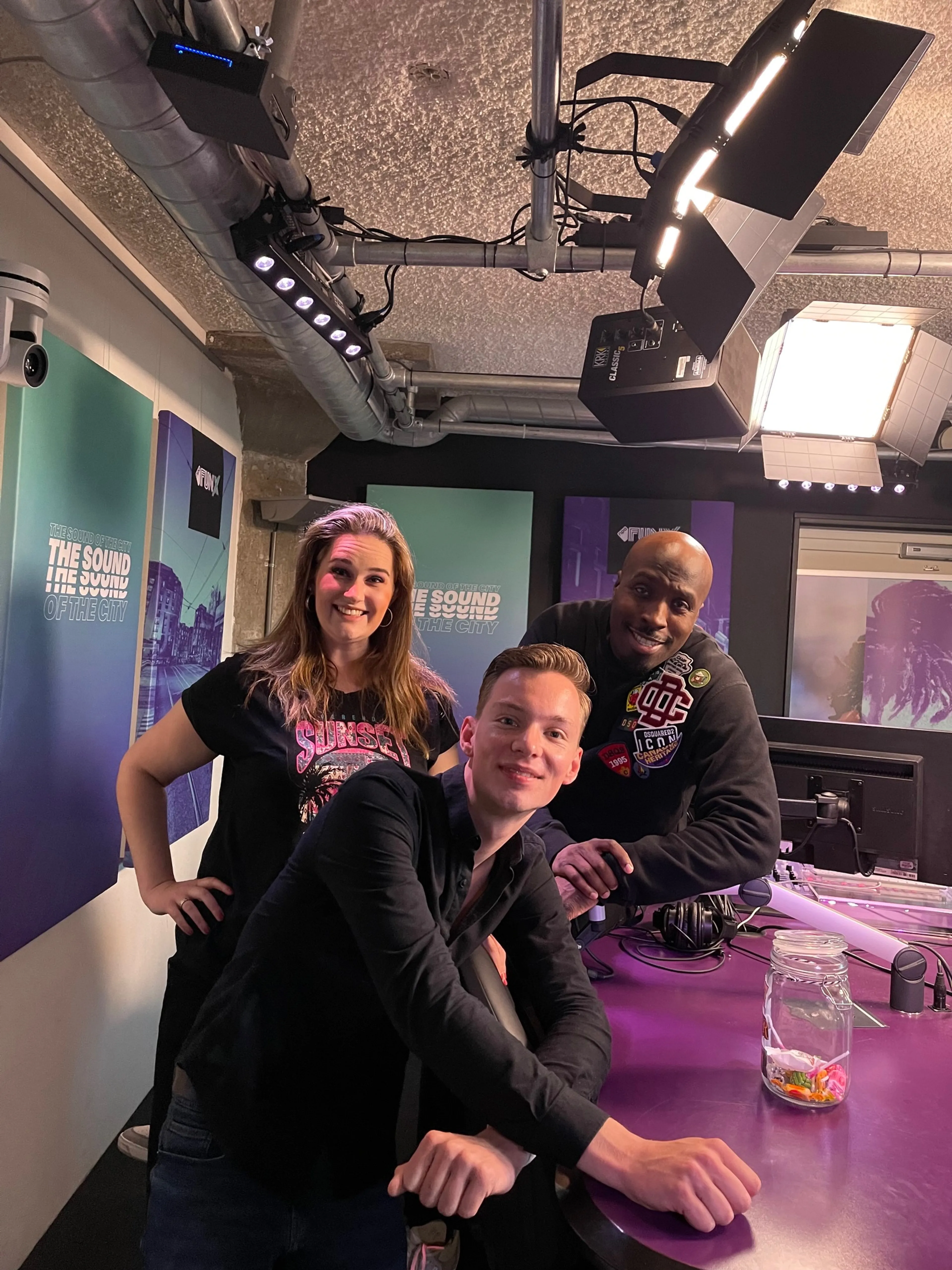 Gerwin komt in 2022 bij de ochtendshow van FunX werken, het programma van dj Fernando Halman. Renske leest dan al een tijdje het nieuws namens de NOS. “In het begin was het best wel een beetje wennen, dan kende hij bepaalde muziek of artiesten niet bijvoorbeeld.” De blonde, Friese jongen die is opgeleid tijdens stage op Hilversumse redacties, moet wennen aan de zender die vooral urban, r&b en hiphop draait.