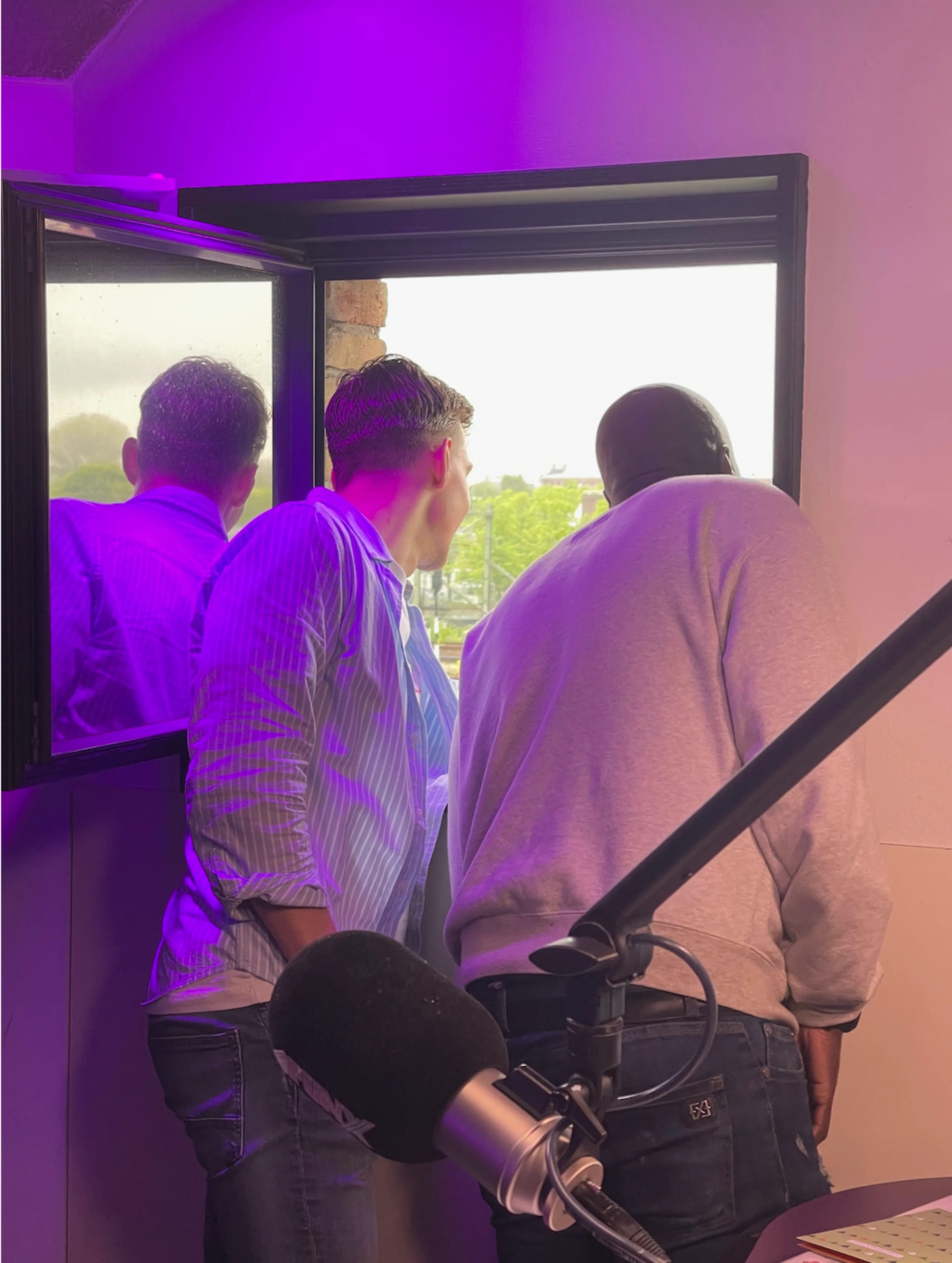 In een paar minuten moeten de twee knopen doorhakken voor hun uitzending die op het punt van beginnen staat. “Tja, we moesten de knop omzetten, doen alsof er niets aan de hand was en gewoon een uitzending maken.”