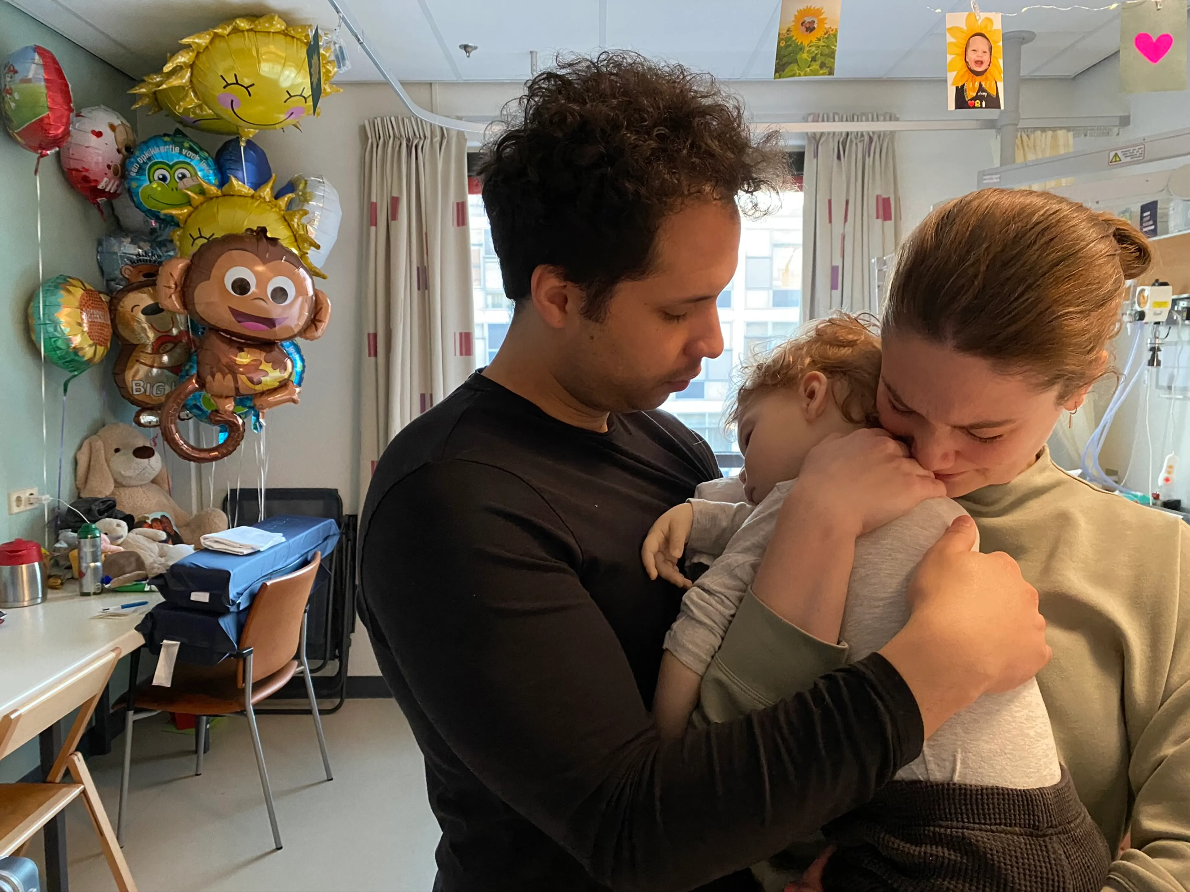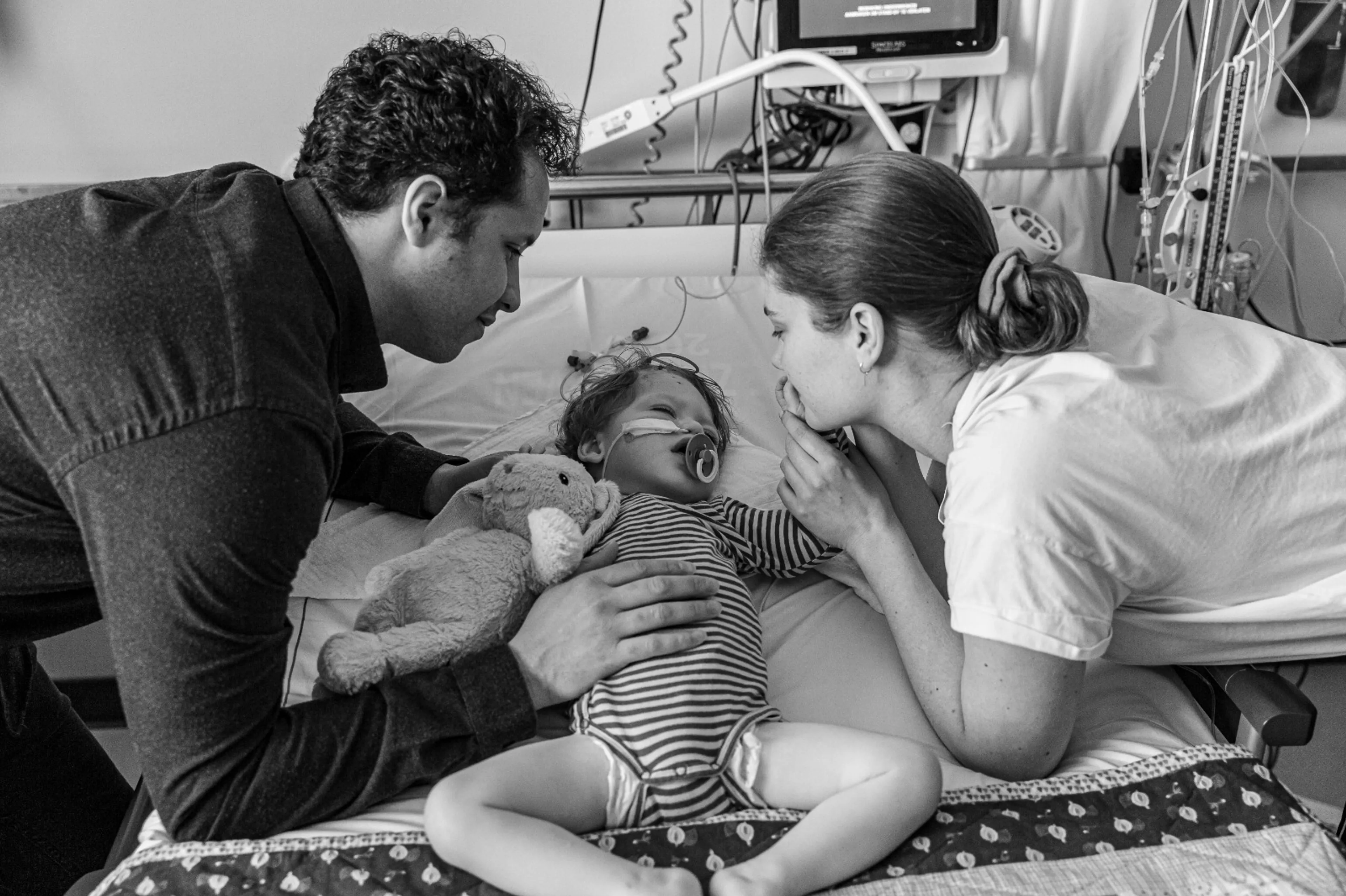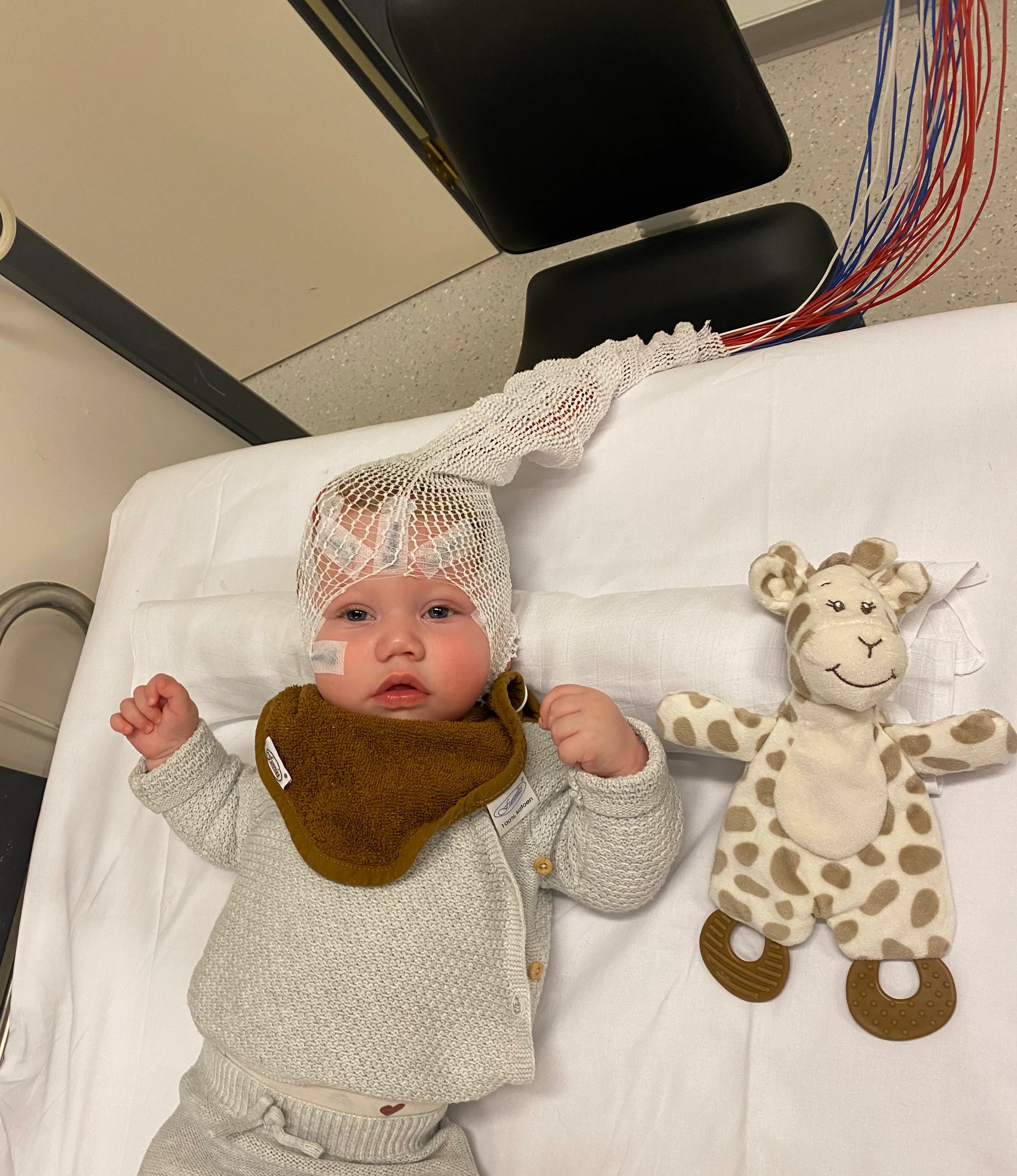 “Ik weet nog dat ik binnenkwam op de afdeling. Ik hoorde Xef al huilen. En daar sta je dan, op zo’n zaal vol kleine kindjes, wetende dat je baby daar ligt. Het was zo onrealistisch. Zijn hoofd vol kleine naaldjes en draadjes. Ik huilde.”