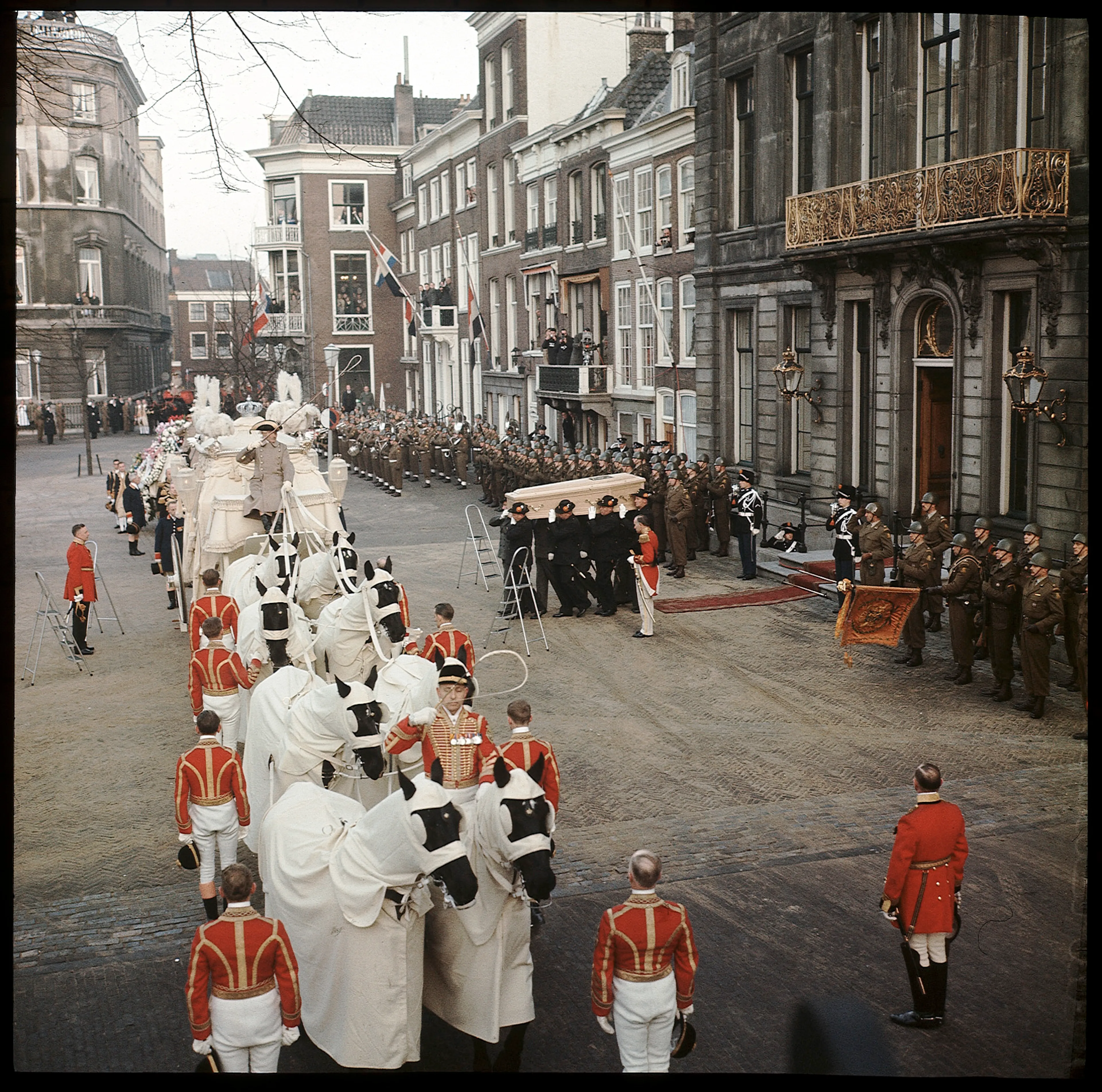 Nogal een verschil met hoe Nederlanders rouwen. Onze voormalige koninginnen Wilhelmina en Juliana kozen voor een witte begrafenis. Zij zagen de dood niet als het einde maar als een opstanding, het begin van een nieuw leven. Prinses Beatrix heeft in 1994 de witte begrafeniskoets zelfs met wat kleur laten aanpassen. De voorheen witte lijkkoets is nu paars, wit, grijs en zilver.