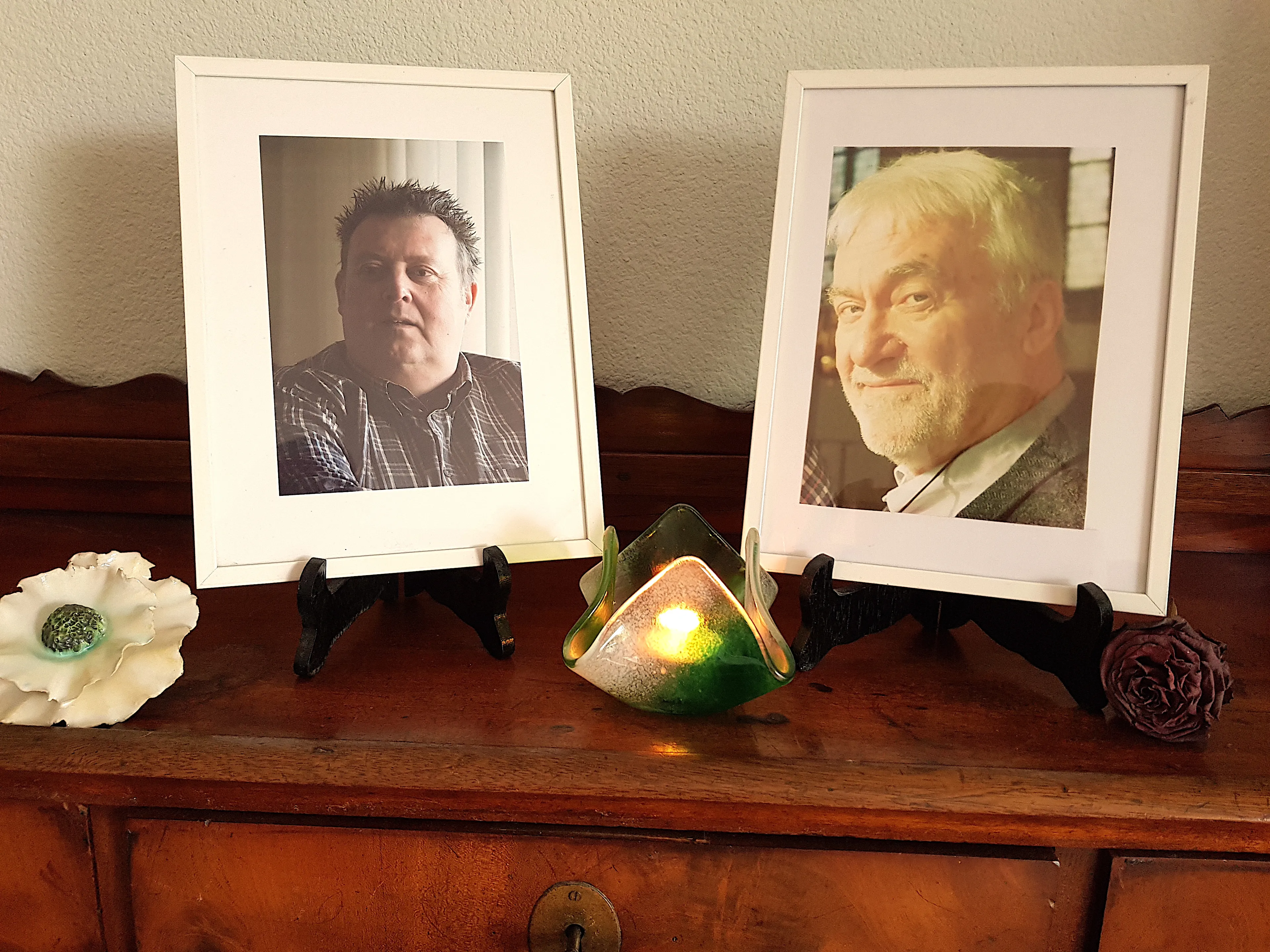 “Met regelmaat denk ik nog aan Aad en Cees,” zegt Ruud. “Elke avond brand ik een kaarsje voor hun foto’s, die ik voor het slapen uitblaas. En dan zeg ik: Welterusten mannen. Waarna Peter glimlacht. Ondanks al het verdriet ben ik zo ontzettend dankbaar dat ik ze beiden heb gekend.”