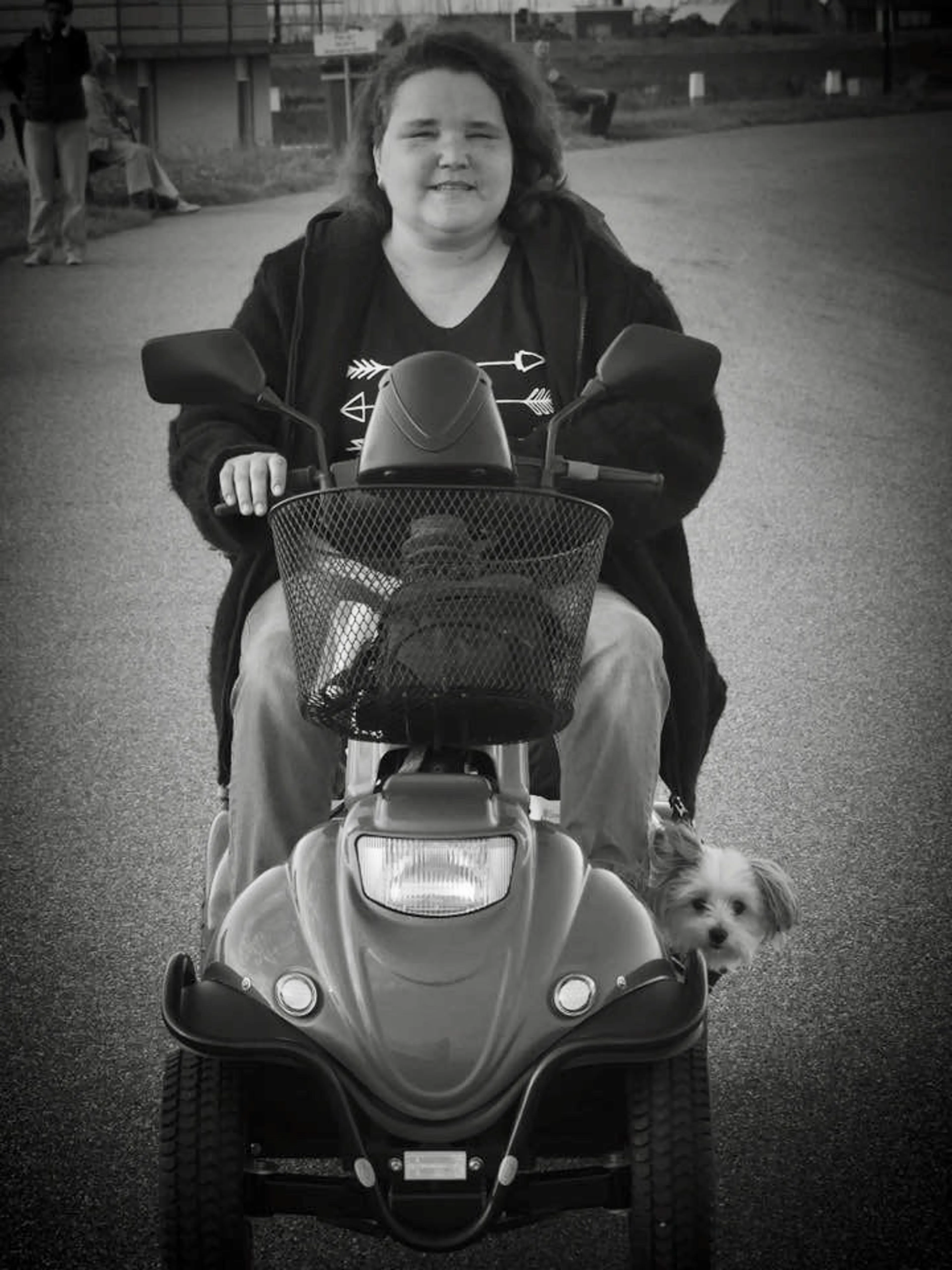 Als Elly werkte, liet Annemieke in de scootmobiel haar hondje Jip uit. Het liefst deed ze dat bij de Waddenzee. ‘Als ze zich daarna nog fit genoeg voelde, keken we ’s avonds samen televisie. Dat was een hele overwinning, want vaak moest ze op bed liggen’, vertelt Elly.
