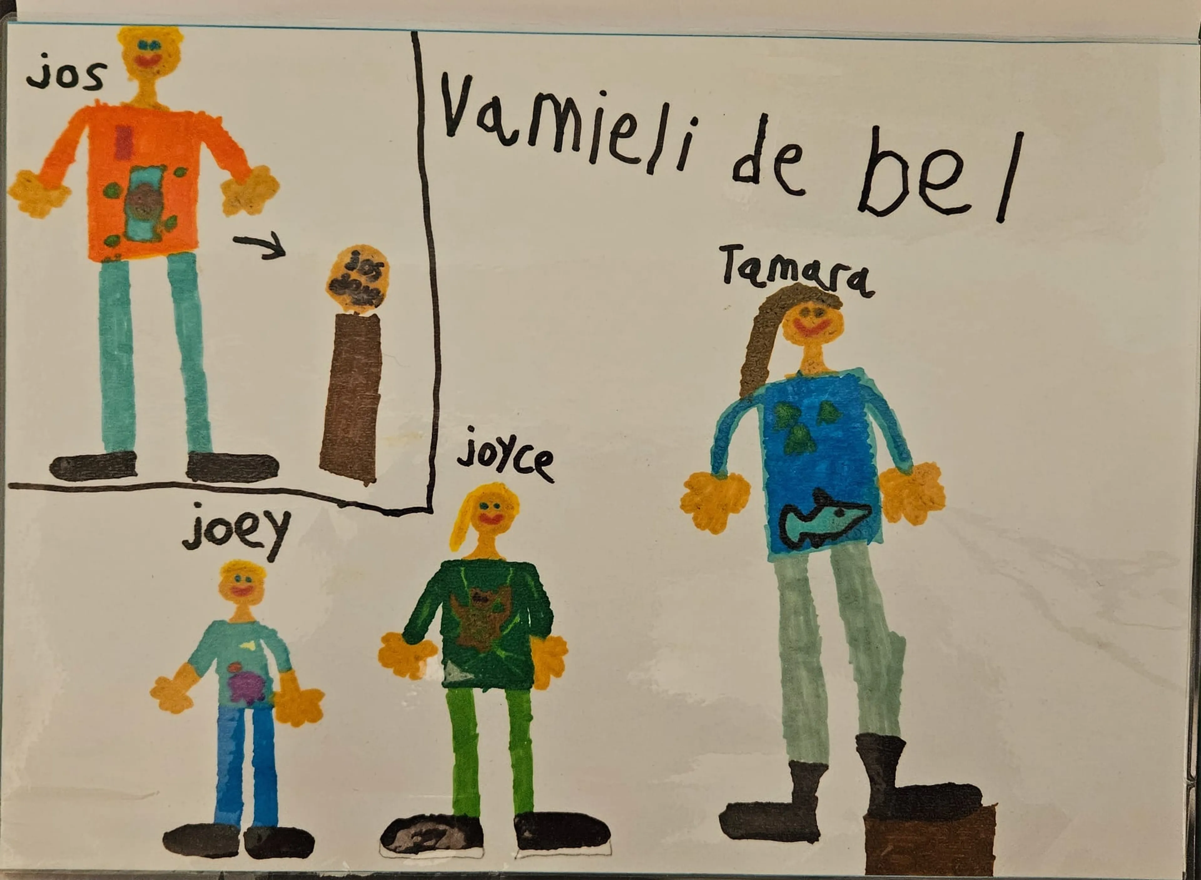 “Samen met Joyce printte ik alle blogs uit en deed ze in insteekmapjes. Het was allemaal nogal kaal, dus vroeg ik aan Joey om er een tekening bij te maken. Die werd zo mooi, dat hij op de voorkant van het boek is gekomen. Iedereen vroeg zich af waarom hij mijn voet op een verhoging had gezet. Hij zei: ‘Weet je wat dat is mama? Dat is de eerste tree van de trap zodat je dichter bij papa kan zijn.’”
