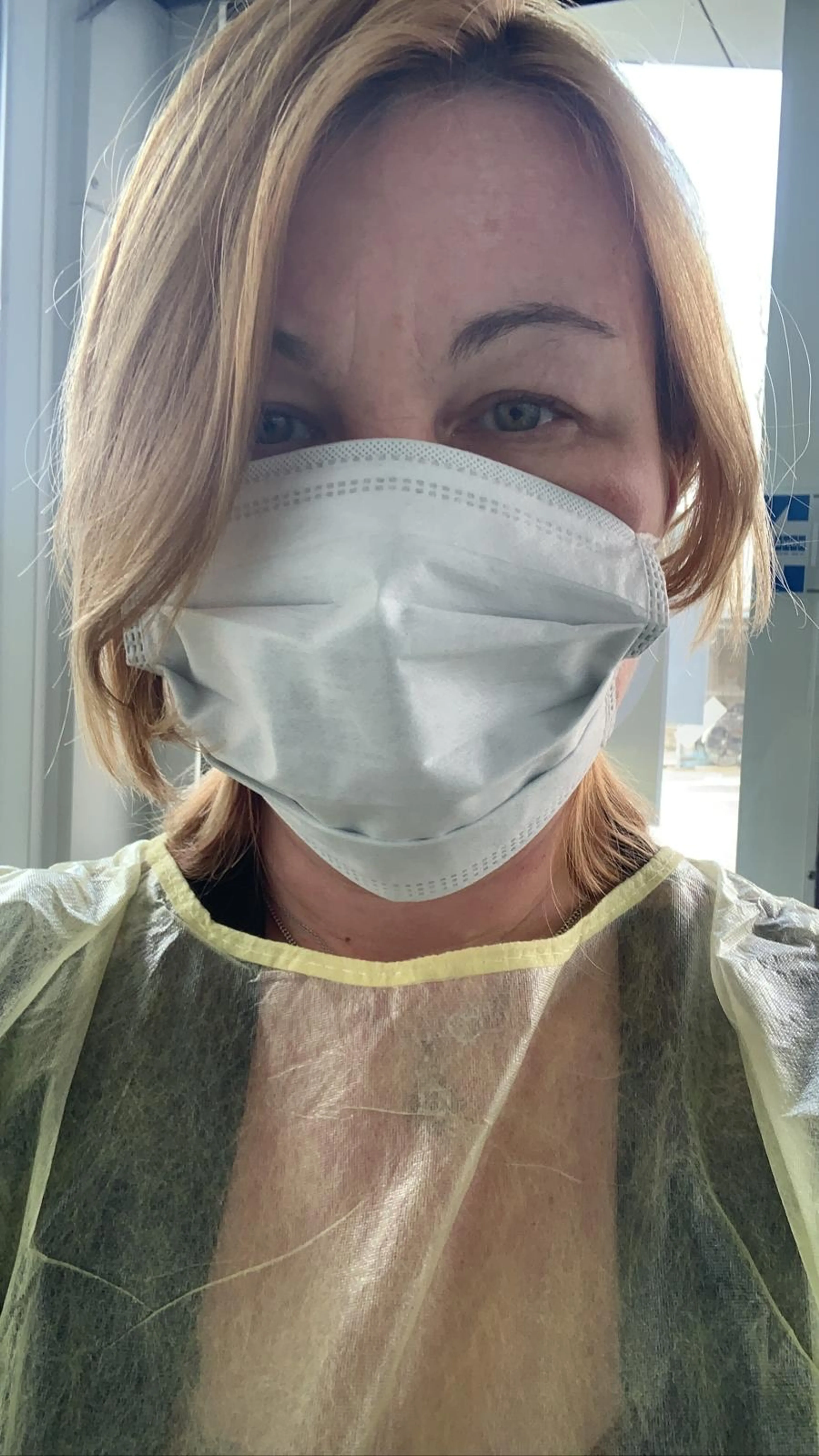 ‘Met mijn masker en bril op, en handschoenen en witte jas aan, kwam ik de kamer van mijn vader in. Mijn broer was ook mee. We waren heel nerveus. Terwijl we op anderhalve meter afstand van hem stonden, zei ik: “Pap, ik ben er.” Mijn vader riep terug, uit een reflex: “Ja, fijn!” Ik zei nog: “Ik hou van je, pap. Ga maar slapen. Je bent moe. Ik blijf bij je.” We mochten hem niet aanraken, niks. Zo heftig.’