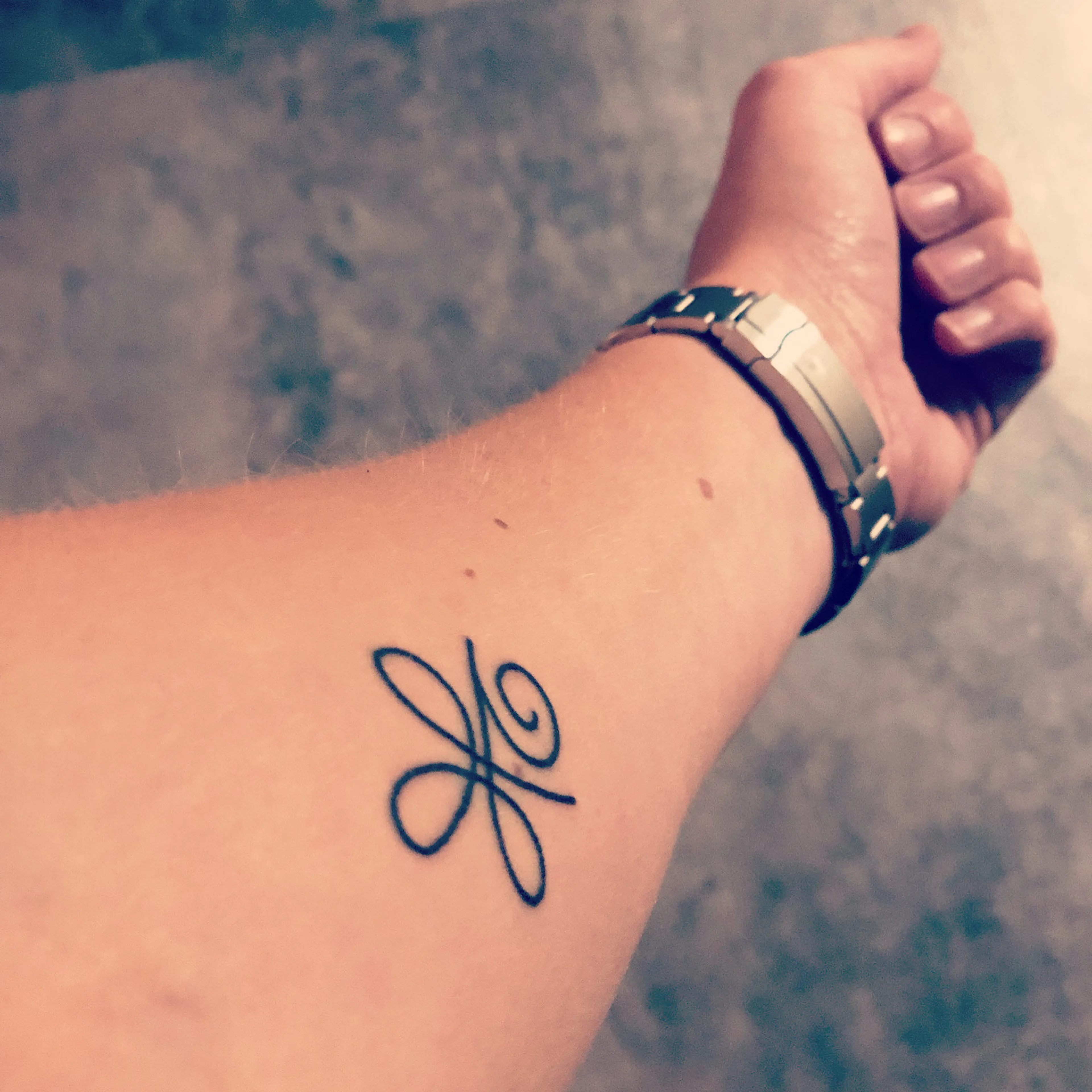 Het idee van een tattoo is er al snel. “Ik was op zoek naar een subtiel symbool met een krachtige betekenis, wat nooit zijn waarde zou verliezen.” Het Keltische teken staat voor onvoorwaardelijke liefde en kracht. Op Mees’ grafsteen staat hetzelfde symbool. “Dit voelt als een soort verbondenheid.”