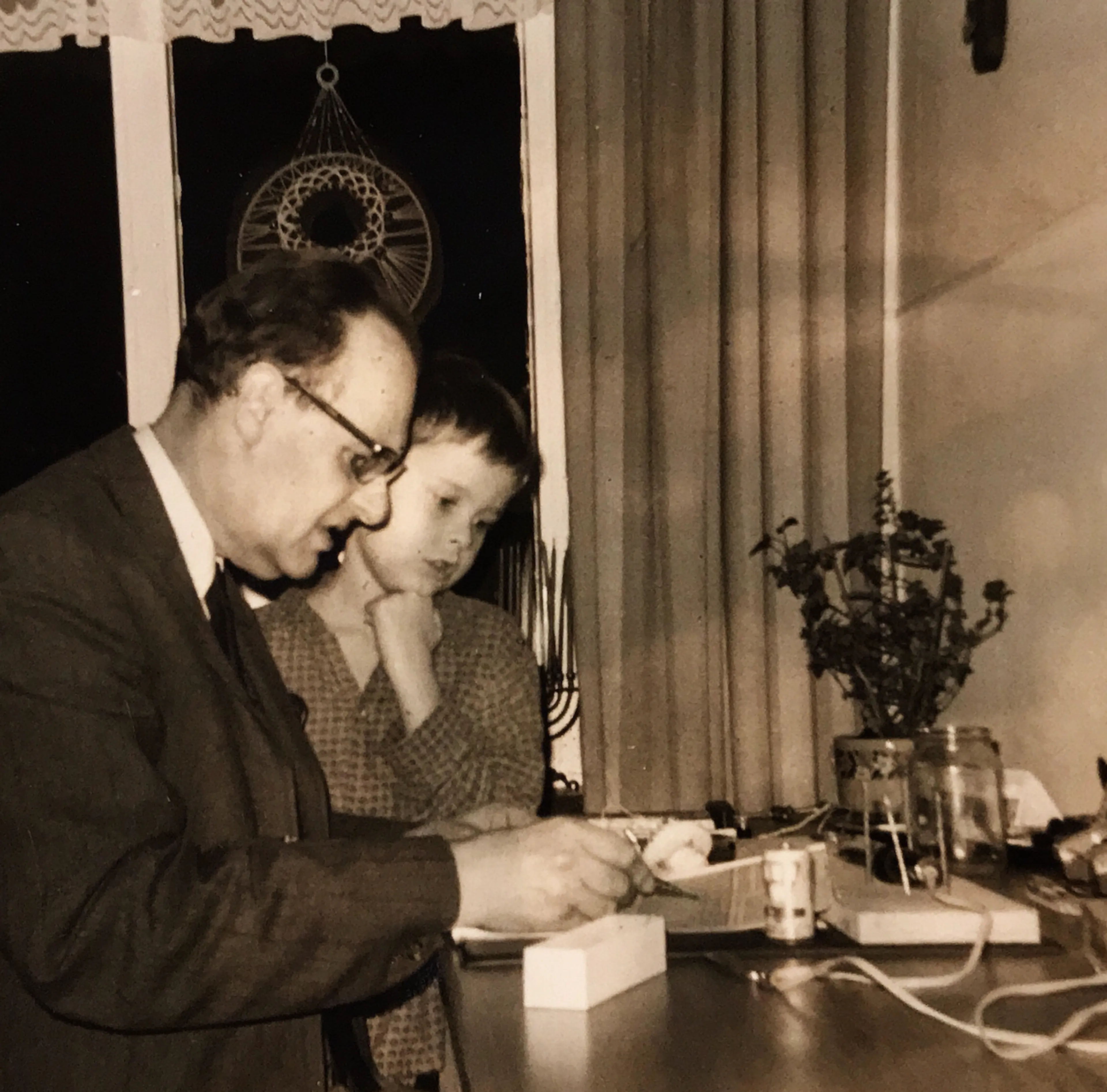 Tim: “Mijn vader was een man met twee gezichten. Ik herinner me hem als een heel betrokken man met wie ik leuke dingen heb gedaan." Tim glimlacht als hij verder vertelt. "We hebben eens samen een radiootje in een jampotje gemaakt. En hij heeft me wel eens meegenomen naar een draaidag bij de lokale omroep, waar hij als cameraman werkte. Het zou goed kunnen dat hij me zelfs geïnspireerd heeft, aangezien ik later bij de NOS en de radio heb gewerkt.”