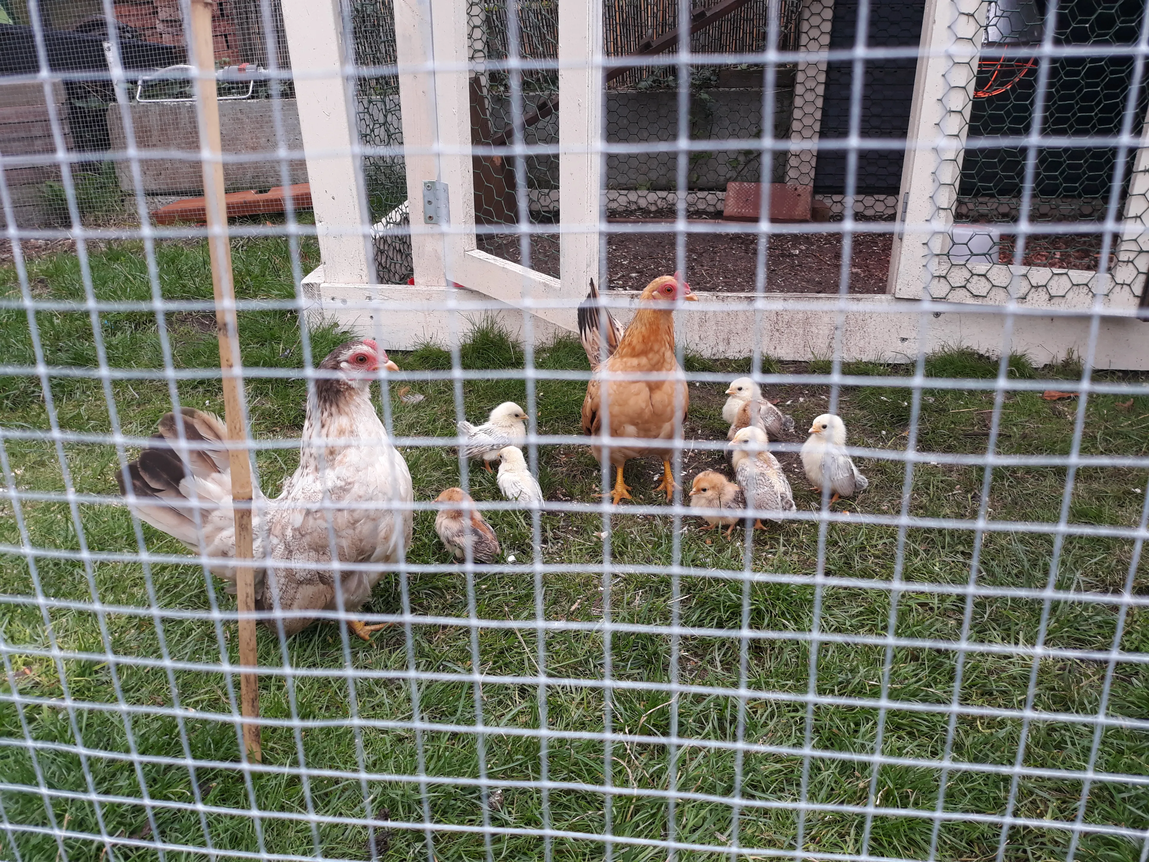 Ik hoor de haan kraaien. Die hadden we nog niet toen Joël er nog was. Een aantal maanden na het overlijden van Joël heb ik kuikentjes in huis gehaald. We zagen ze opgroeien van lieve, kleine en zachte kuikentjes tot heuse kippen, die zelf alweer voor nageslacht gezorgd hebben.