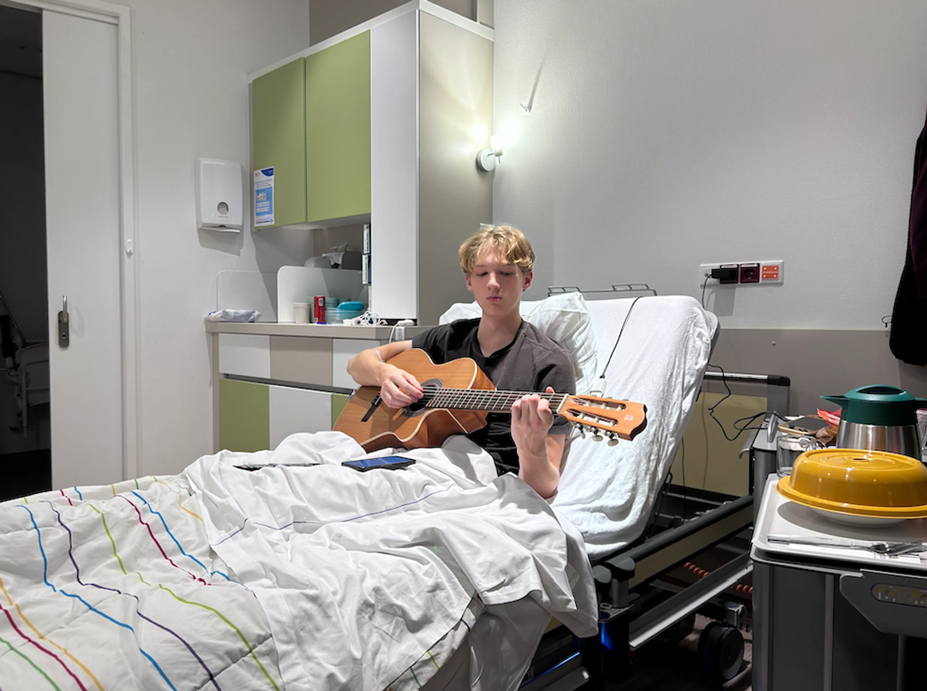 Het is een routineoperatie met een lichte verdoving. “Ik ging in de ochtend naar het ziekenhuis en wachtte samen met Ossip op het moment van de operatie. Ossip zat op bed gitaar te spelen, terwijl ik op de stoel naast hem zat te lezen. Ik zei: ‘Vind je het spannend?’ Maar nee, er was weinig aan de hand. Ik denk dat hij vooral veel aan het appen was met het meisje dat hij tijdens zijn excursie in Rome had ontmoet. Ze waren verliefd geworden en het meisje zou de volgende dag langskomen in het ziekenhuis.”