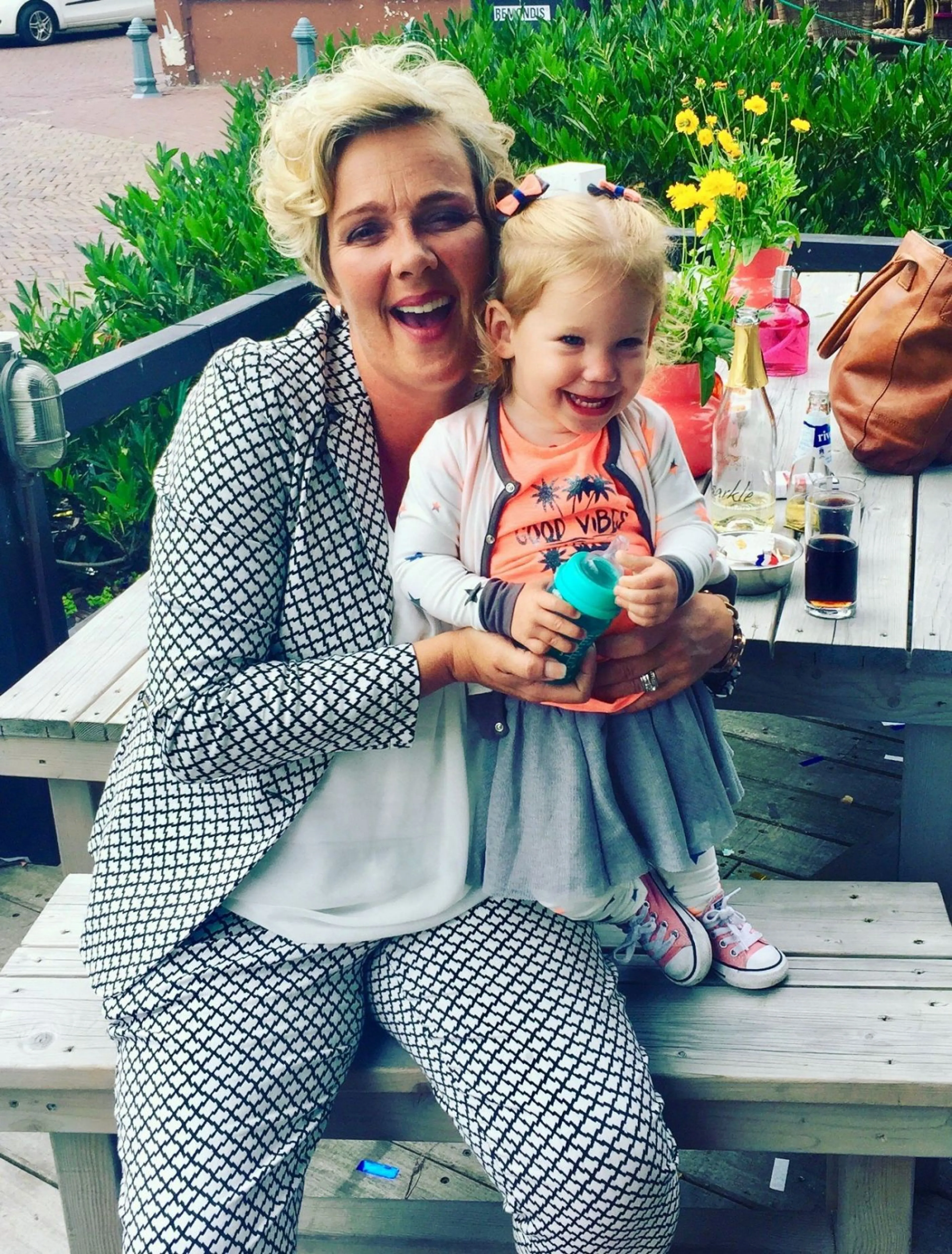 ‘Die foto is genomen in juli 2016. Ze was toen 43 jaar, had net haar kledingwinkel geopend’, vertelt Grietje. Het is een van de laatste foto’s waarop ze nog zo vrolijk kijkt. Want enkele maanden later hoorde Margreet dat ze longkanker had.